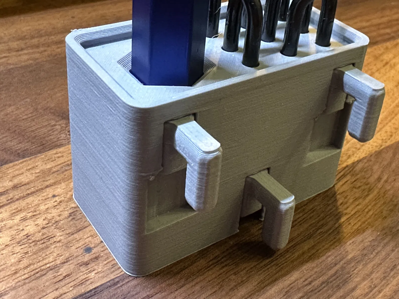 Về sản phẩm Ultimount là một giải pháp móc treo có thiết kế mỏng, tàng hình và dễ in (không cần hỗ trợ) cho dòng sản phẩm Ikea Skadis. Các móc và đế treo được thiết kế để đảm bảo không cần vật liệu hỗ trợ khi in móc hoặc đế theo chiều dọc (hầu hết các giá đỡ sẽ được in theo cách này). Không cần dụng cụ để lắp đặt hay sử dụng, và các móc treo sẽ tàng hình khi sử dụng. Chúng có cơ chế khóa tạo ra tiếng "tách" thỏa mãn khi được cố định vào vị trí, và sẽ không bị bung ra trong quá trình sử dụng. Tuy nhiên, chúng rất dễ tháo ra bằng cách nhấn xuống móc treo (hướng in được đề xuất giúp móc treo rất chắc chắn theo chiều dọc). #### Cách sử dụng Có nhiều mẫu đã được tạo sẵn sử dụng bộ kết nối Ultimount bao gồm: Giá đỡ tua vít iFixit Mako Giá đỡ 3 chai keo