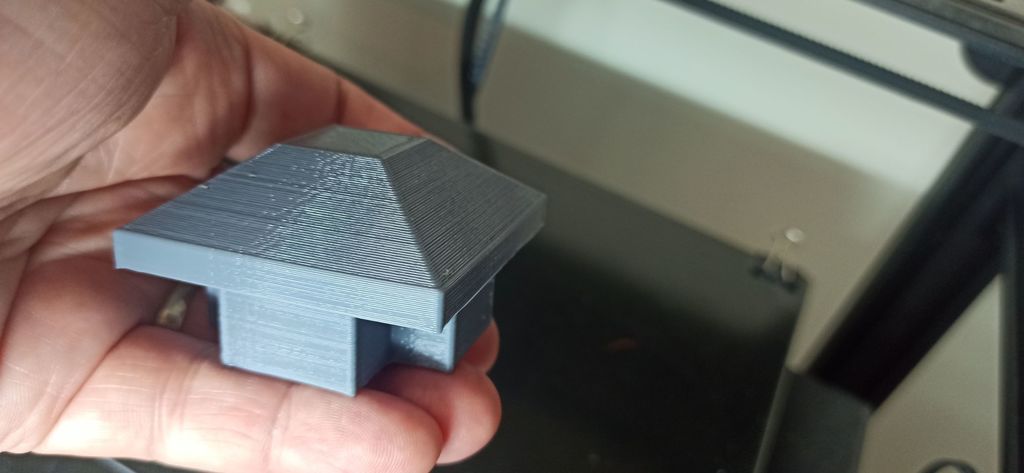 Do thiếu một nút bịt và một cái bị hư do nắng, tôi đã tự thiết kế và in ra nút bịt thay thế cho thanh lan can. Chi tiết in: Máy in Sapphire Plus TwoTrees, không dùng rafts, có supports, độ phân giải 0.2, infill 20, dùng filament ESUN PETG màu Grey. Thiết kế bằng FreeCAD.