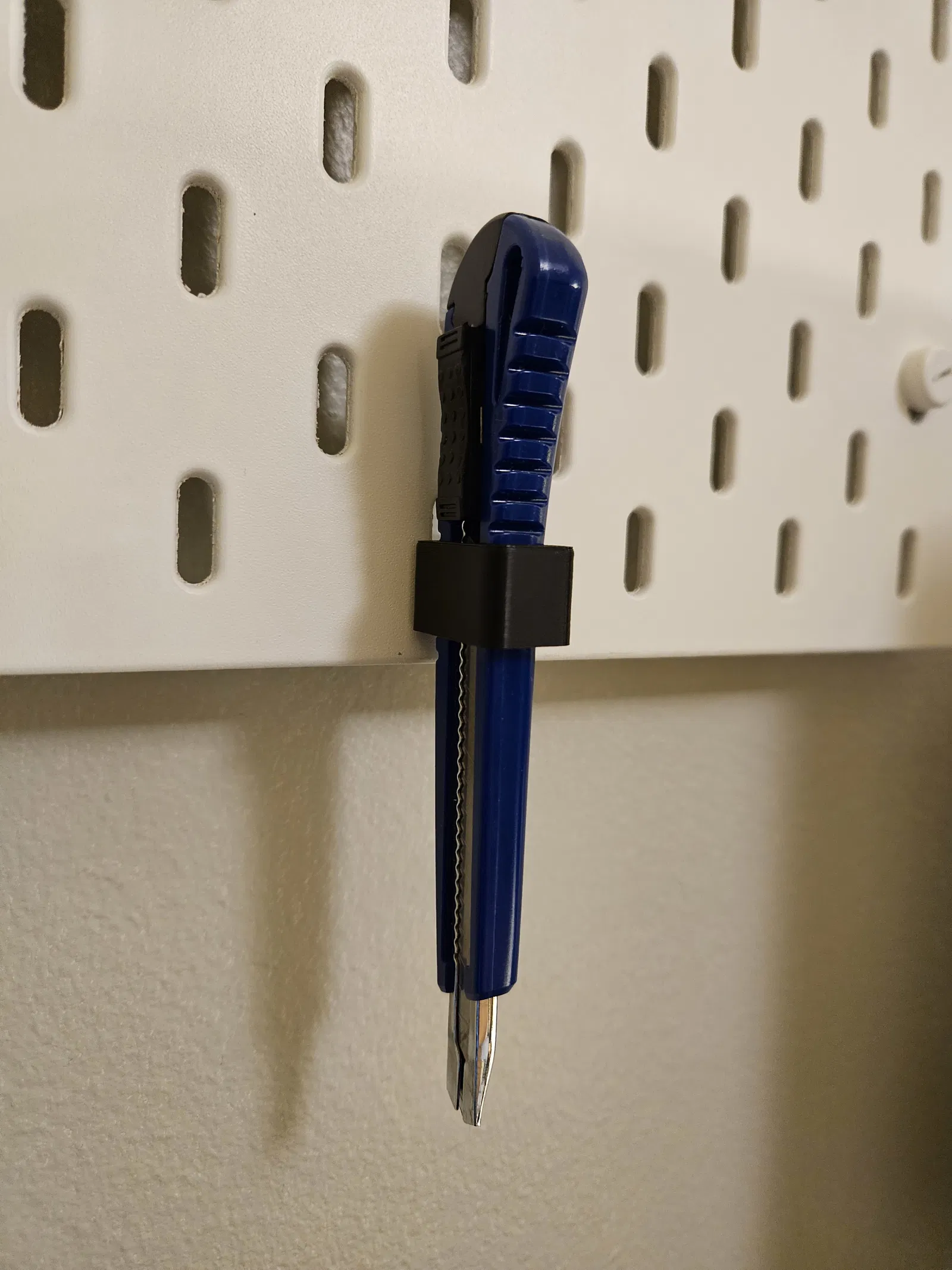 Chế lại đế giữ dao cắt để dụng cụ đặt vuông góc trên bảng ghim Skadis của IKEA. Một bản tùy chỉnh cho người dùng muốn sắp xếp không gian làm việc hiệu quả hơn với các phụ kiện IKEA.
