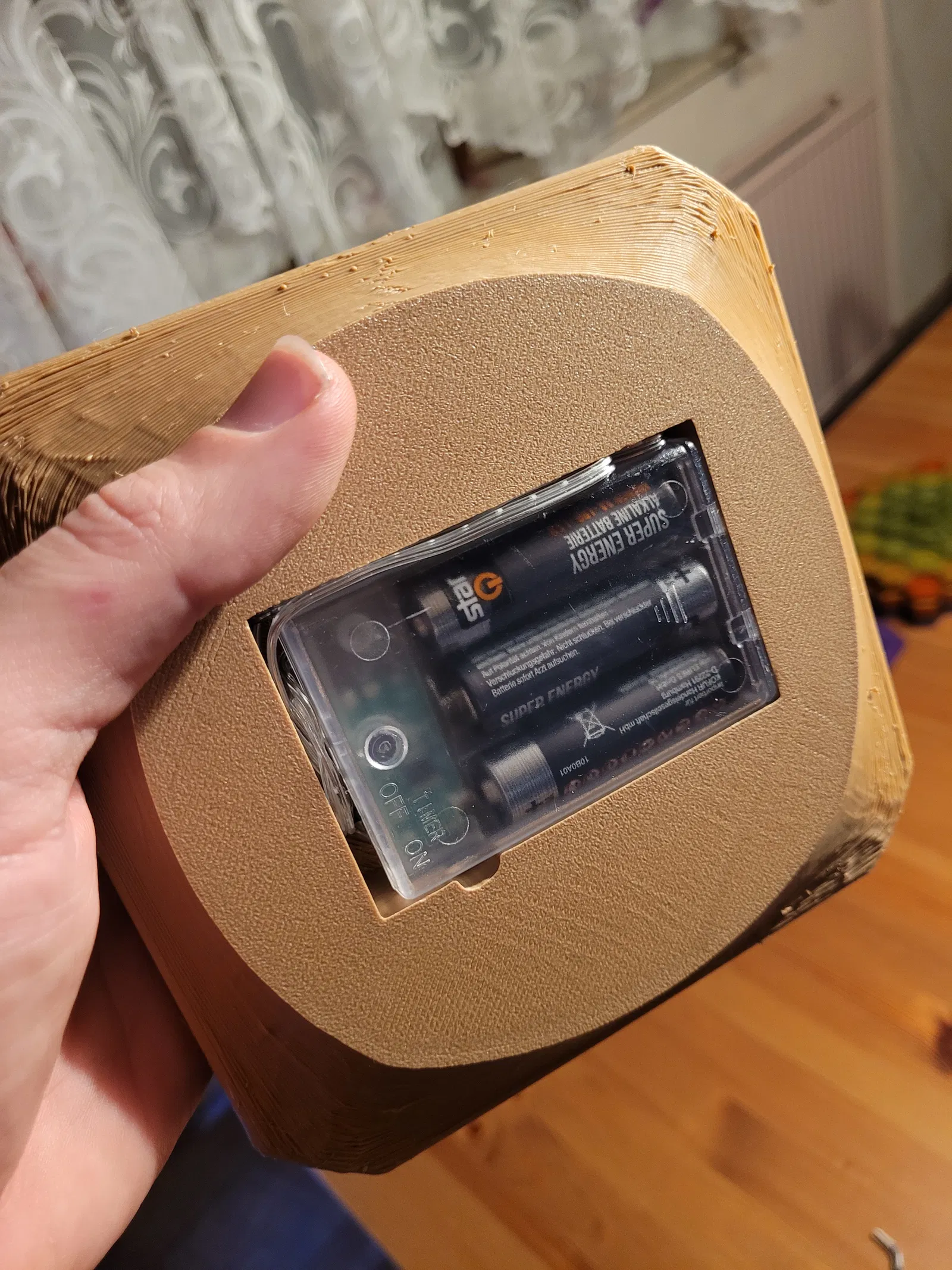 Có một lỗ thoát dây từ hộp pin vào bên trong lồng đèn.