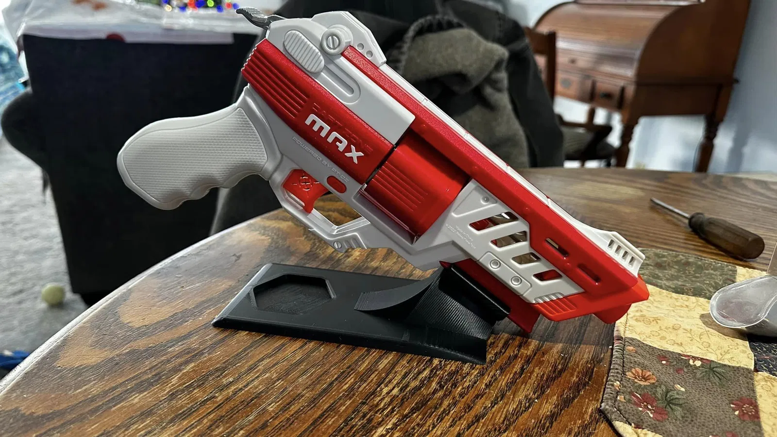 Đây là chân đế trưng bày Dart Zone Outlaw trên bàn. In ra với "supports" là được. Mình nghĩ mình để "supports" khoảng 80 hoặc 90 độ, có khi không cần "supports" luôn cũng được.