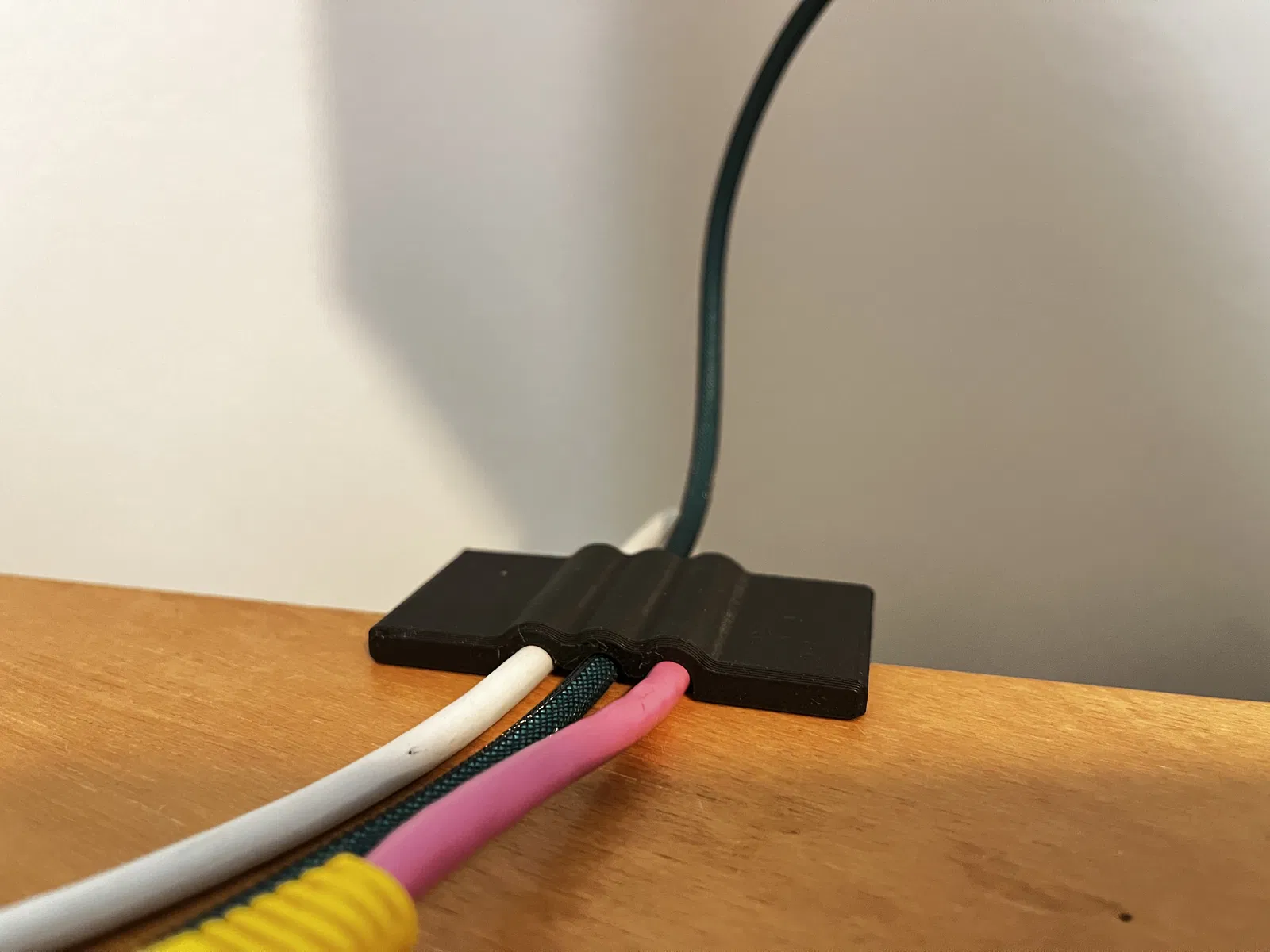 Kẹp này dành cho 3 sợi cáp 4mm, gắn trên mặt bàn dày 12mm. Phiên bản chỉnh sửa từ @MrGudenheim, được cung cấp file Fusion 360. Lưu ý cần scale ốc vít xuống 99% để vừa.