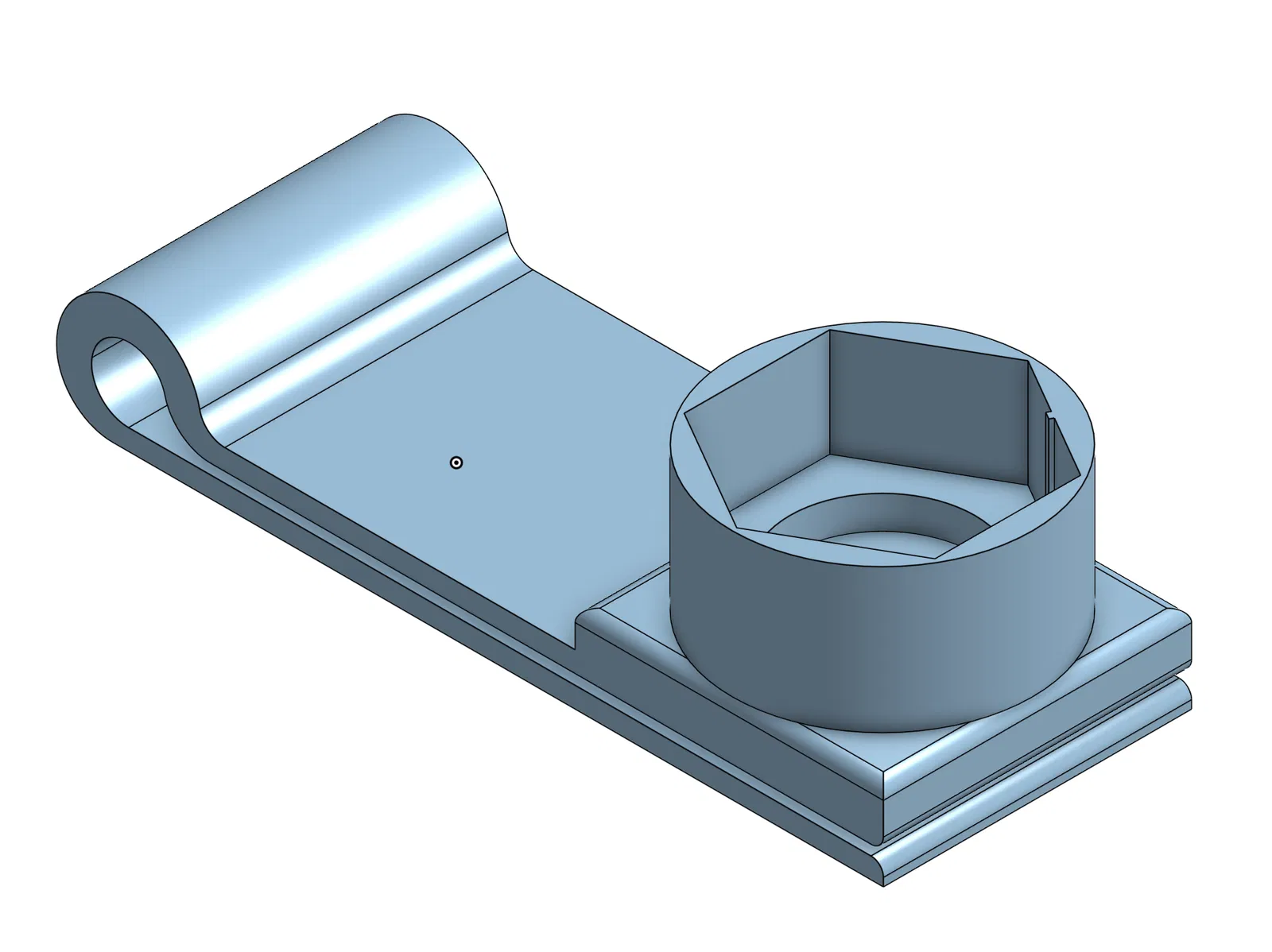 Có hai mẫu cho cái đế giữ phấn. Tôi bắt đầu với cái hình lục giác khớp với hình dạng của cục phấn, nhưng tôi thấy vậy khó giữ cho phấn mòn đều. Nên tôi thiết kế cái bề mặt ngoài bo tròn. Cái này giúp cho tôi mài phấn đều hơn.