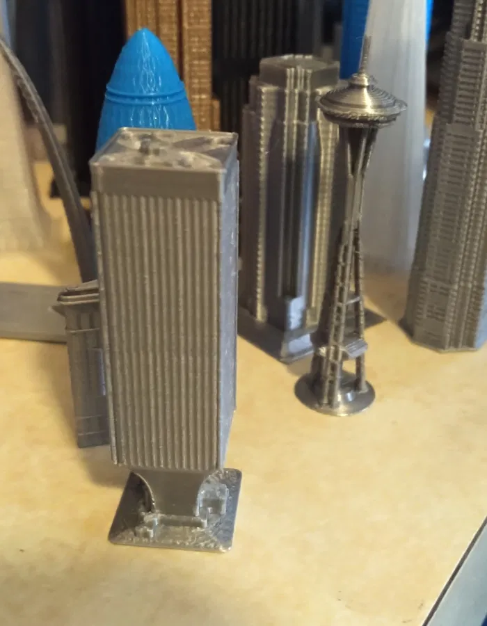 Tiếp tục với chủ đề MiniWorld3D, đây là Tòa nhà Rainier cũ hơn, được thiết kế bởi kiến trúc sư Minoru Yamasaki và xây dựng vào năm 1977. Mô hình có tỷ lệ 1/1000. Tôi đã in nó ở tỷ lệ 1/3000 vì tôi đã in các mô hình MiniWorld3D ở tỷ lệ đó.