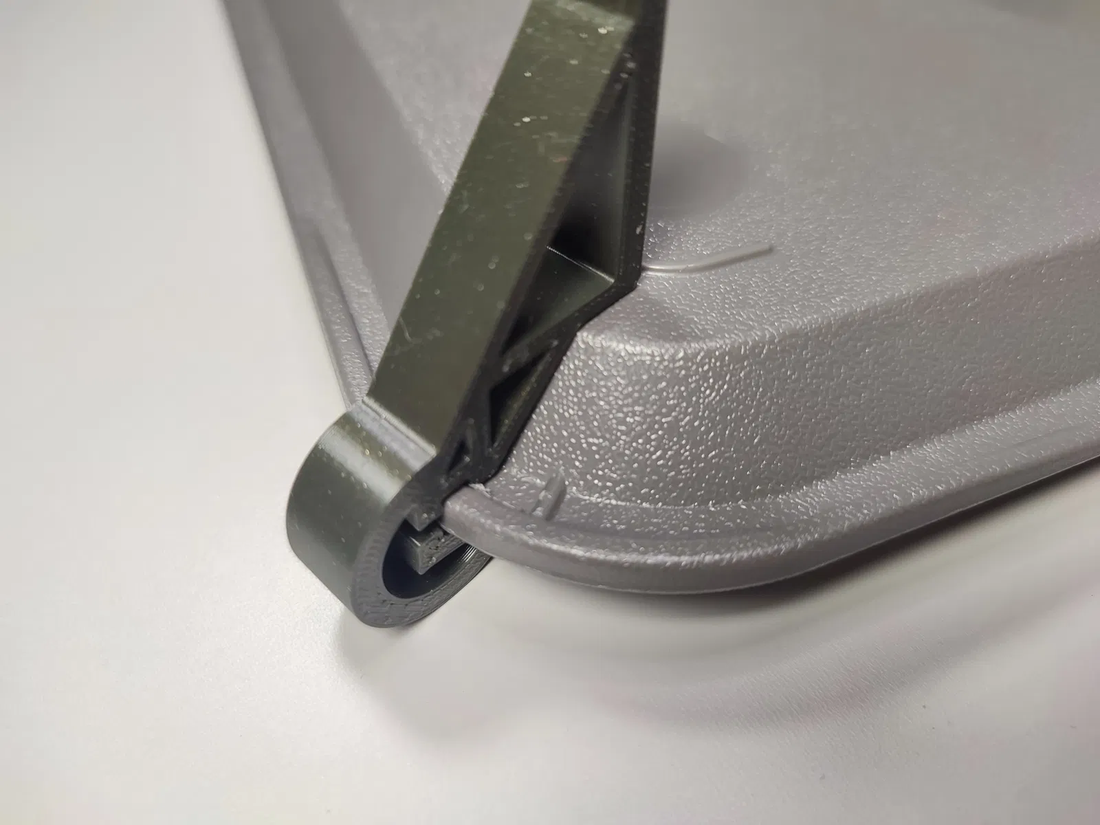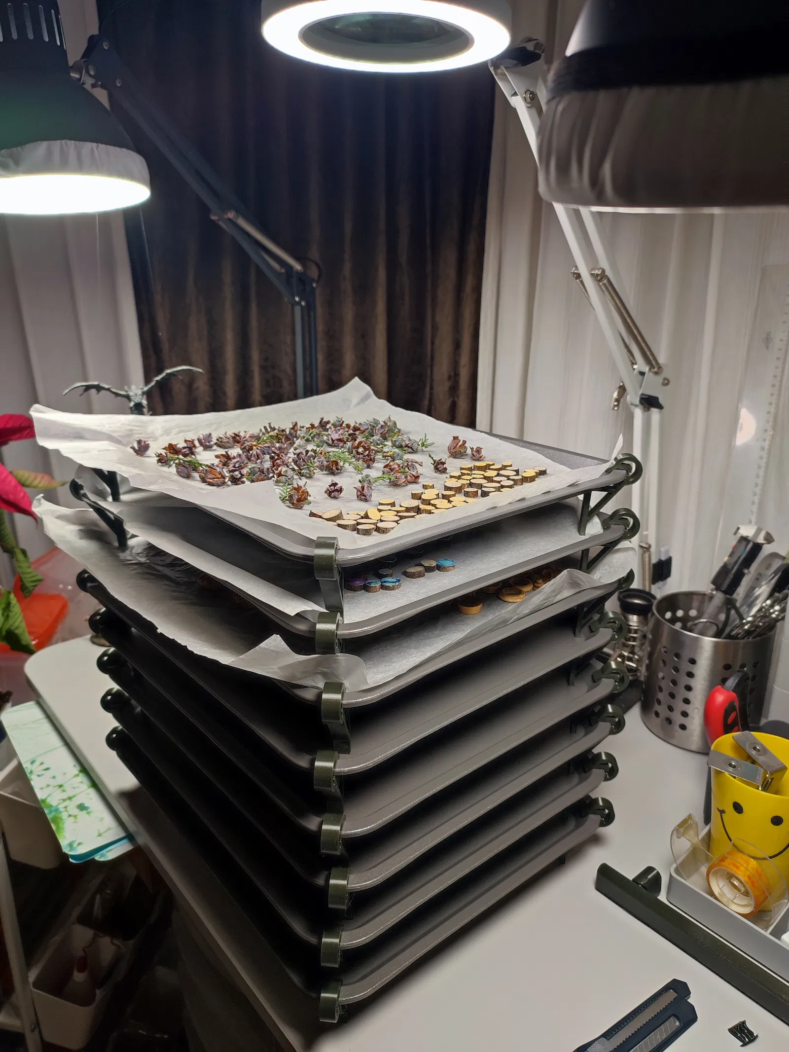 Để chúng ở giữa cạnh, rồi trượt vào góc và khóa chúng qua cái mép nhỏ (hoặc bất cứ thứ gì bạn gọi cái chỗ nhỏ dưới góc đó :)), là bạn sẽ có một bộ khay xếp chồng chắc chắn.