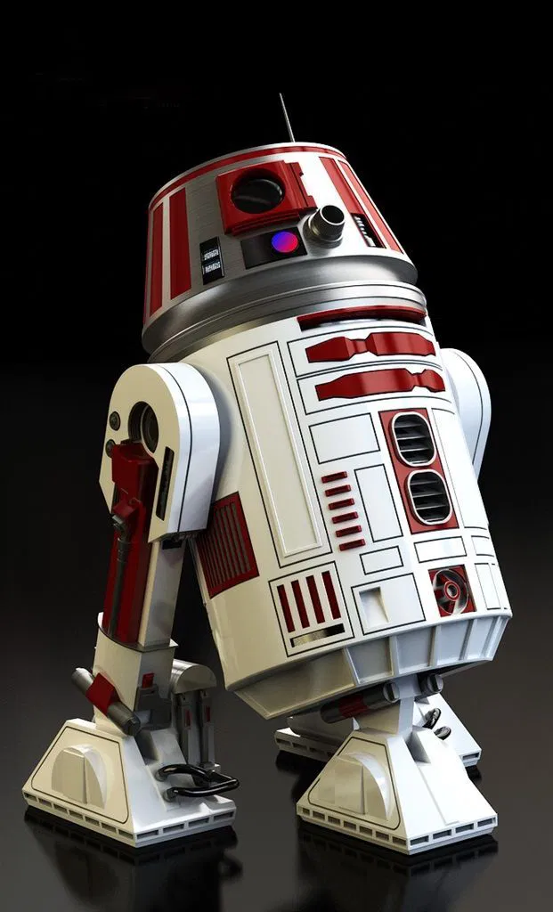 Mô hình droid R6 Astromech, một đơn vị droid sửa chữa quen thuộc trong vũ trụ Star Wars. Thích hợp cho người hâm mộ Star Wars và các dự án in 3D.