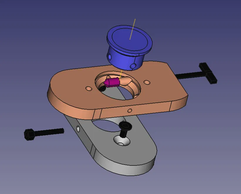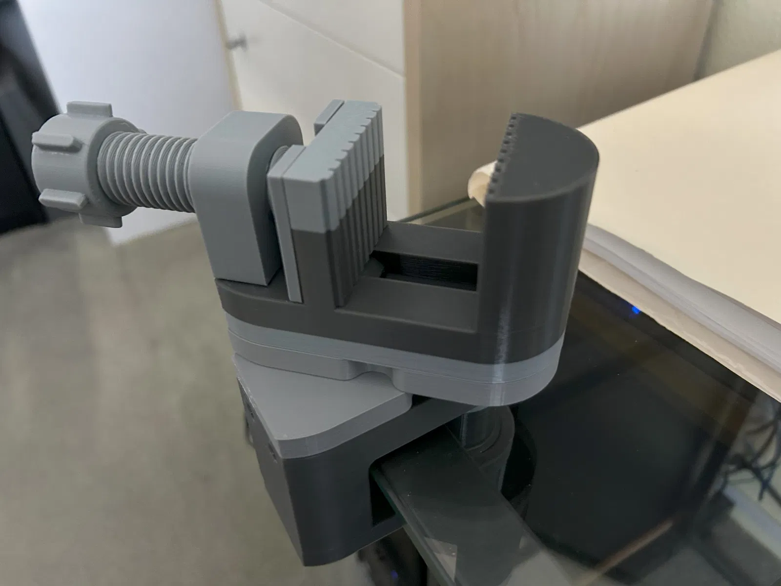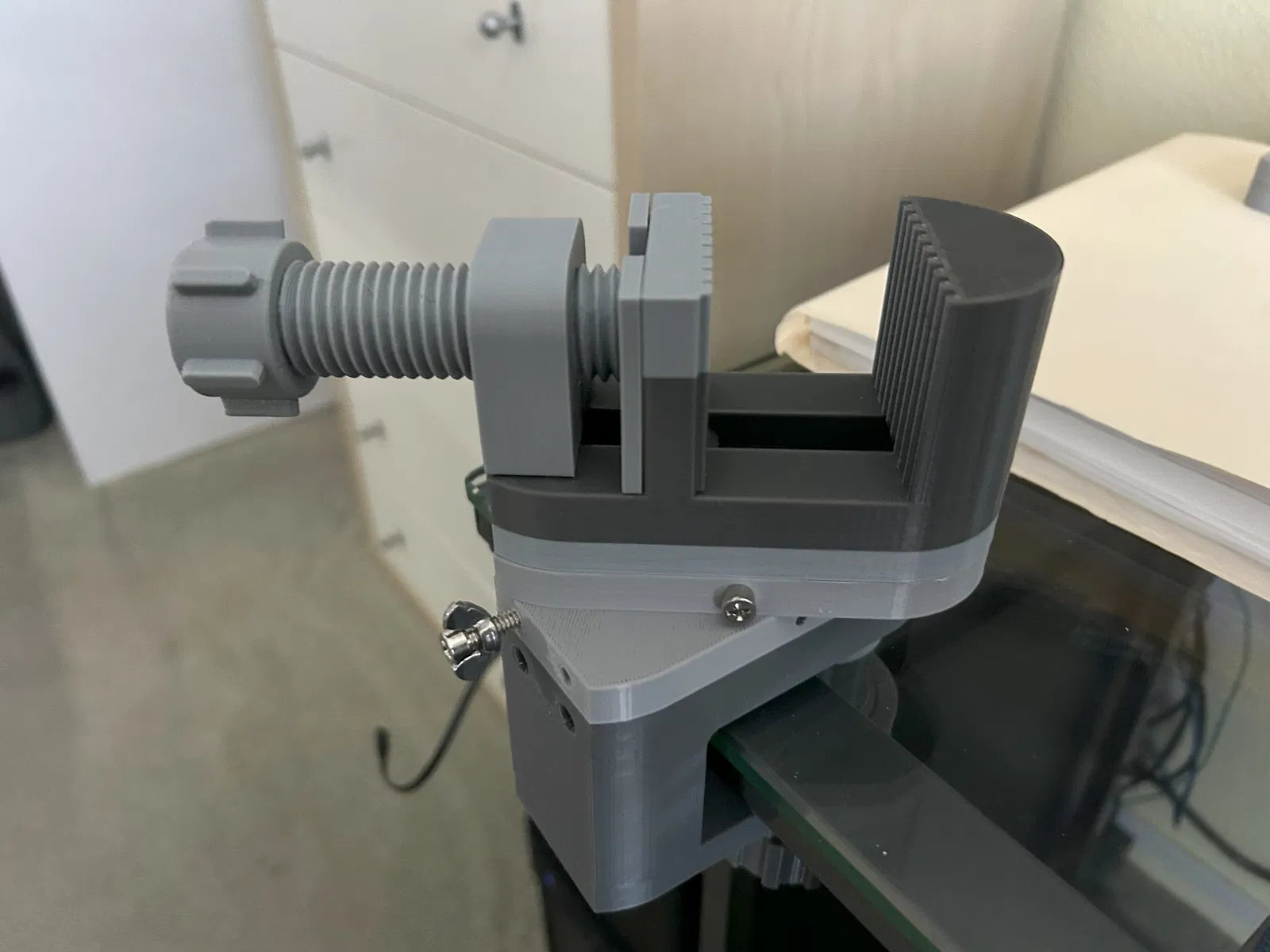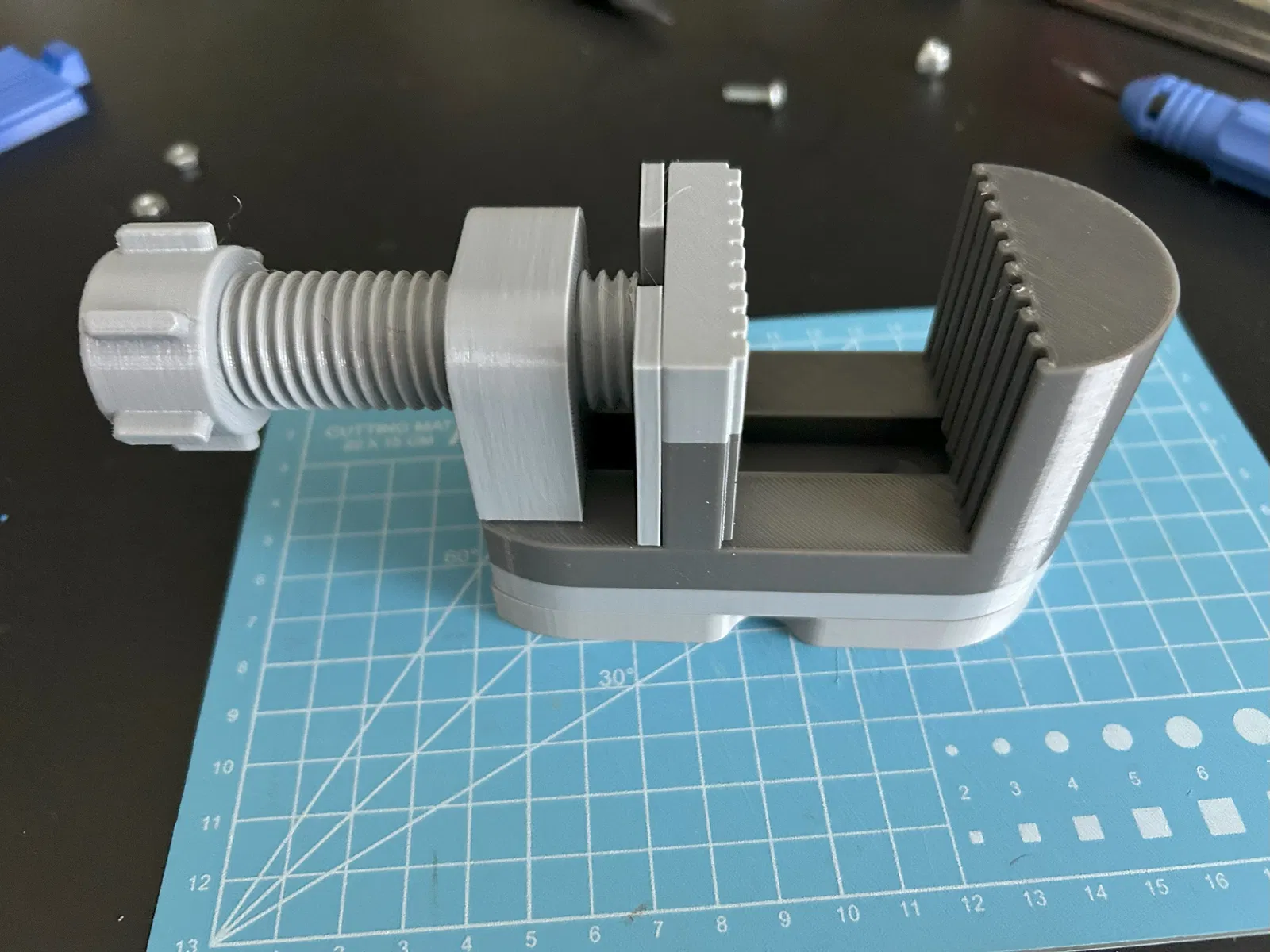 Hai loại đế xoay độ chế cho máy kẹp (bench vice) kiêm đế kẹp bàn của mình. Phiên bản 'B' là loại khớp nối ngàm đơn giản, cho phép tháo máy kẹp ra khỏi đế kẹp bàn dễ dàng để di chuyển. Phiên bản 'A' cũng có thể tháo rời, nhưng được gài chốt và có khóa xoay. Cả hai phiên bản đều được gắn bằng ốc 8-32 dài ½ inch (đầu bằng hoặc đầu tròn đều được vì lỗ khoét khá sâu). Phiên bản 'A' cần hai con ốc dài 1.5 inch loại 10-24 (hoặc 32), một con làm chốt khóa ở phía đế xoay phía máy kẹp và một con ở phía đế xoay phía đế kẹp bàn để làm khóa xoay. Khóa hoạt động bằng cách đẩy một pít-tông hình nón vào trụ xoay.