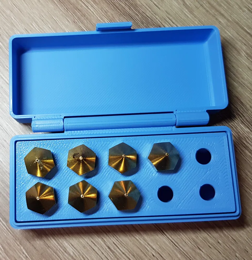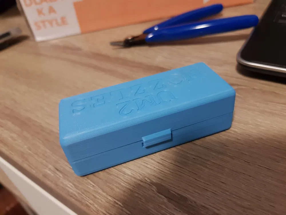 Một cái hộp đựng đầu phun kiểu UM2 vừa vặn với Biqu B1, được thiết kế dạng in-place và có thể tùy chỉnh kích thước. Hộp có thể đựng 10 đầu phun và đi kèm một miếng lót giữ. File F3D được cung cấp để tùy chỉnh dễ dàng.