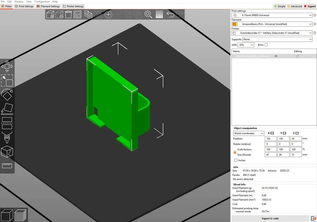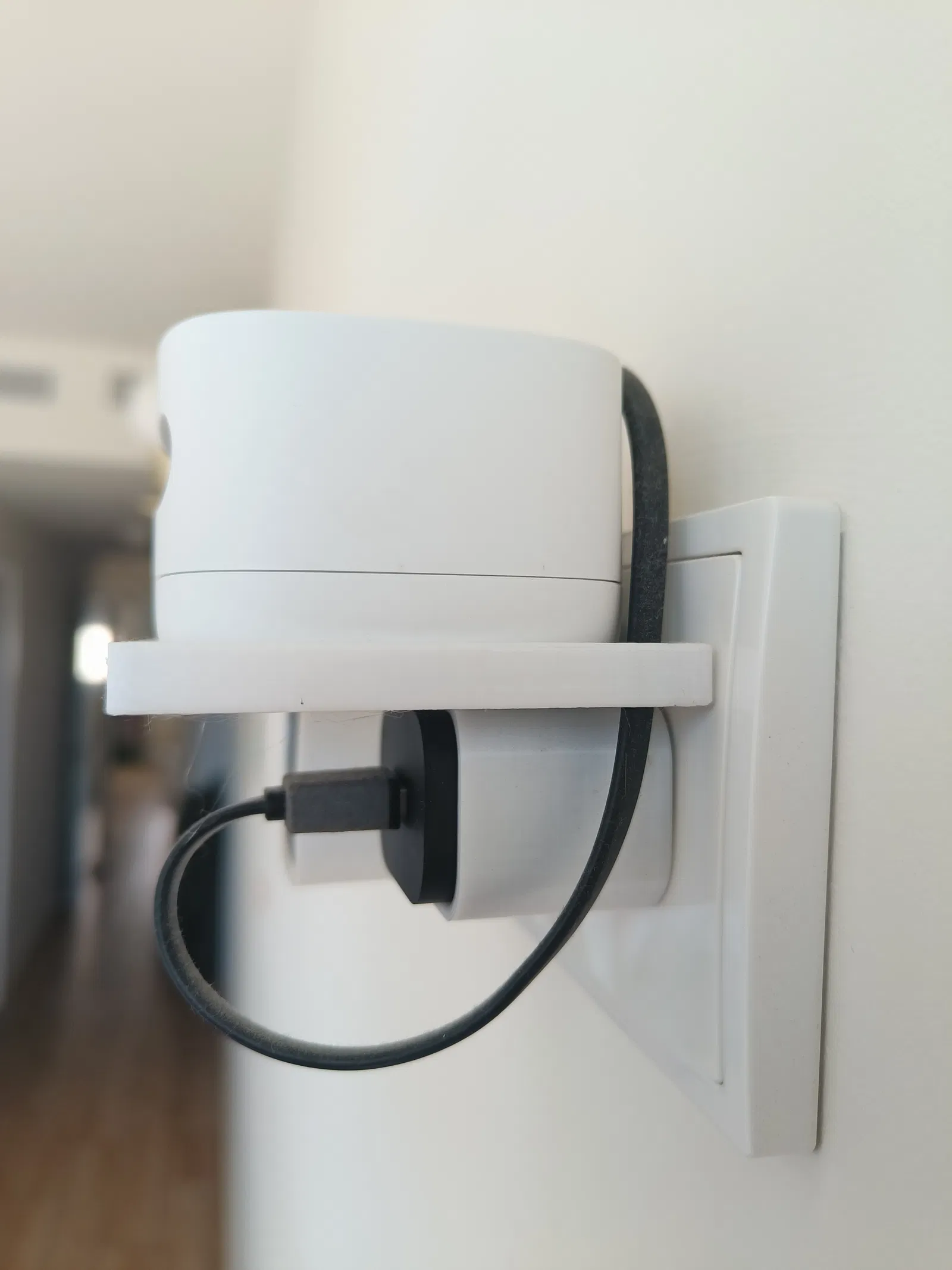 Tui làm cái đế giữ cho Amazon Smart Air Quality Monitor, gắn vô cục sạc luôn. Thiết kế không cần support đâu nha. Anh em in nhớ cẩn thận với độ chính xác của máy in mình đó, cái đế này nó fit sát vô cục sạc lắm để không bị rớt. Tui có khoét thêm lỗ phía sau để luồn dây sạc với lại có chỗ giấu dây cho gọn gàng.