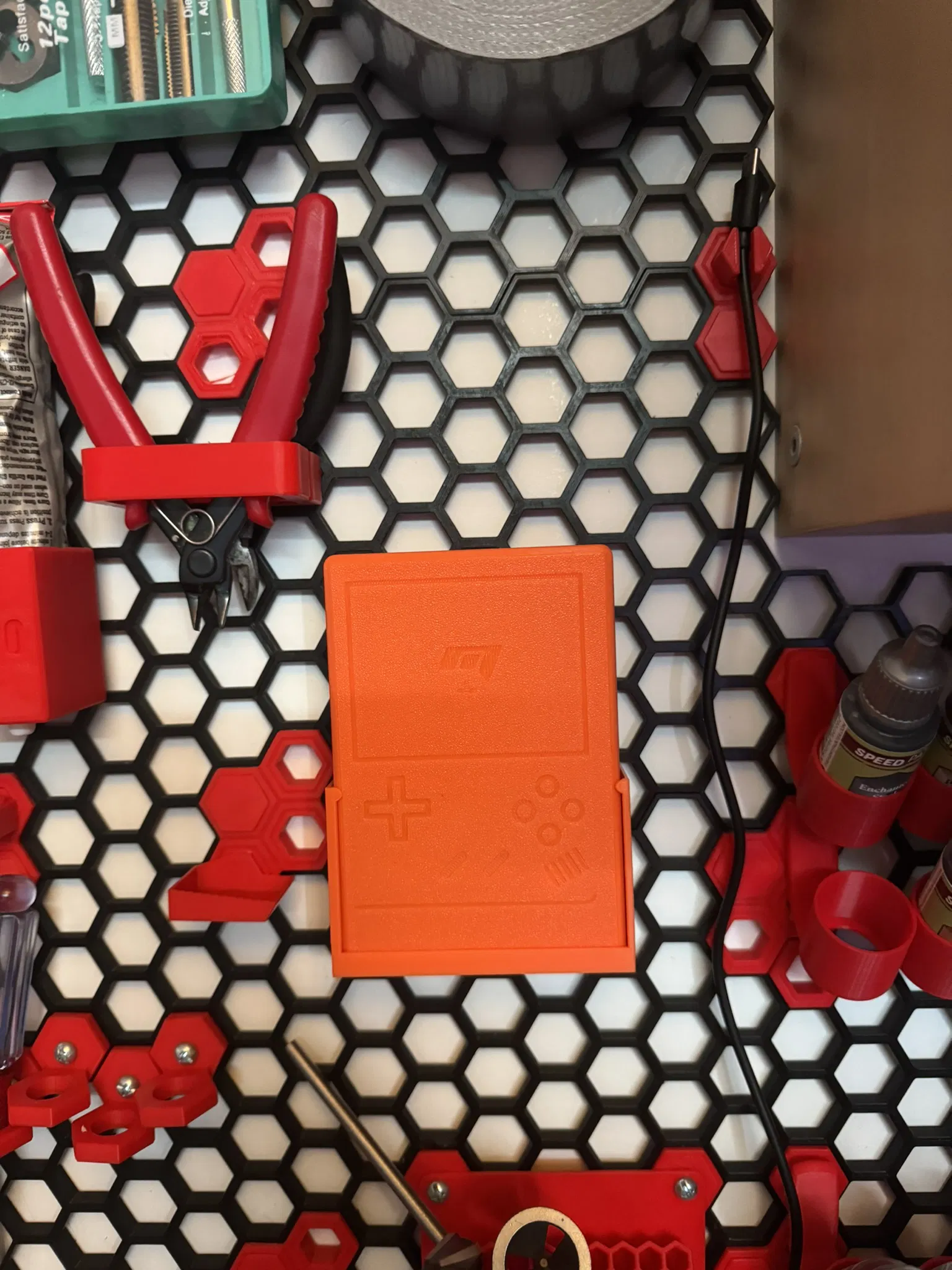 Giá treo tường tổ ong cho Miyoo Mini+ (Miyoo Mini+ GripCase Honeycomb Wallstorage HWS). Móc giữ máy in 3D, không cần chống đỡ. Thiết kế đơn giản, dễ in ấn.