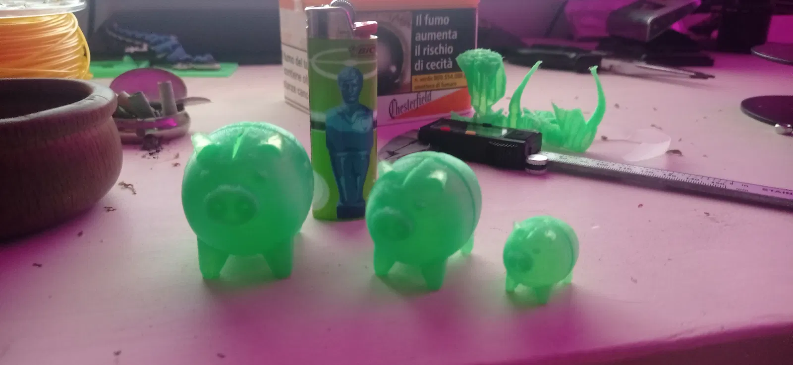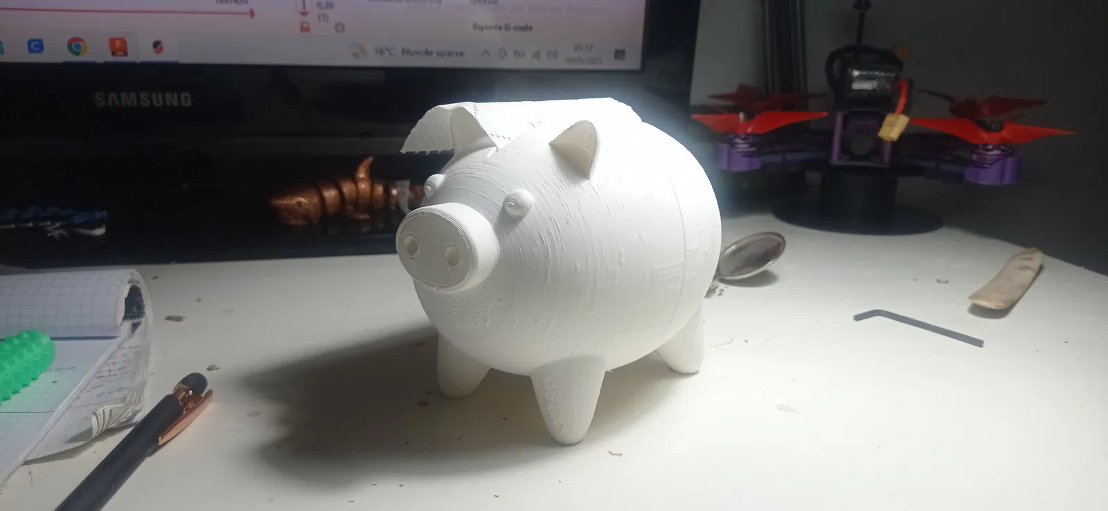 Con heo nhỏ dễ thương này được thiết kế để chứa một cuộn giấy vệ sinh tiện dụng bên trong, chia đôi. Bạn có thể đặt một cuộn giấy 90x90 thông thường vào bên trong hoặc sử dụng nó như một ống heo tiết kiệm cho con bạn. Có thể in thành hai phần mà không cần đến giá đỡ, nhưng tôi không khuyên dùng nhiệt độ 210 độ PLA. Tôi đã in với 10 infil.