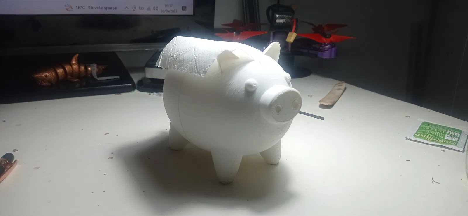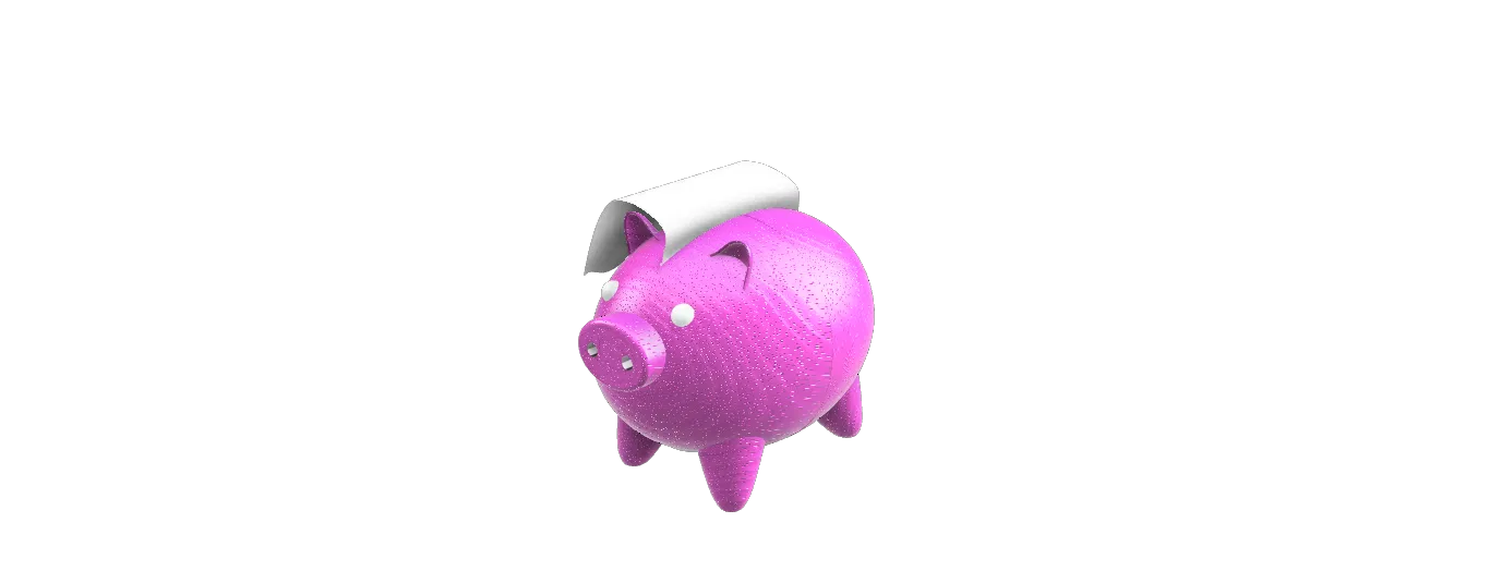 Chú heo nhỏ dễ thương này có thể chứa một cuộn giấy vệ sinh tiện dụng bên trong, chia đôi. Bạn có thể đặt một cuộn giấy 90x90 thông thường vào bên trong hoặc sử dụng nó như một ống heo tiết kiệm cho con bạn. Có thể in thành hai phần mà không cần đến giá đỡ.