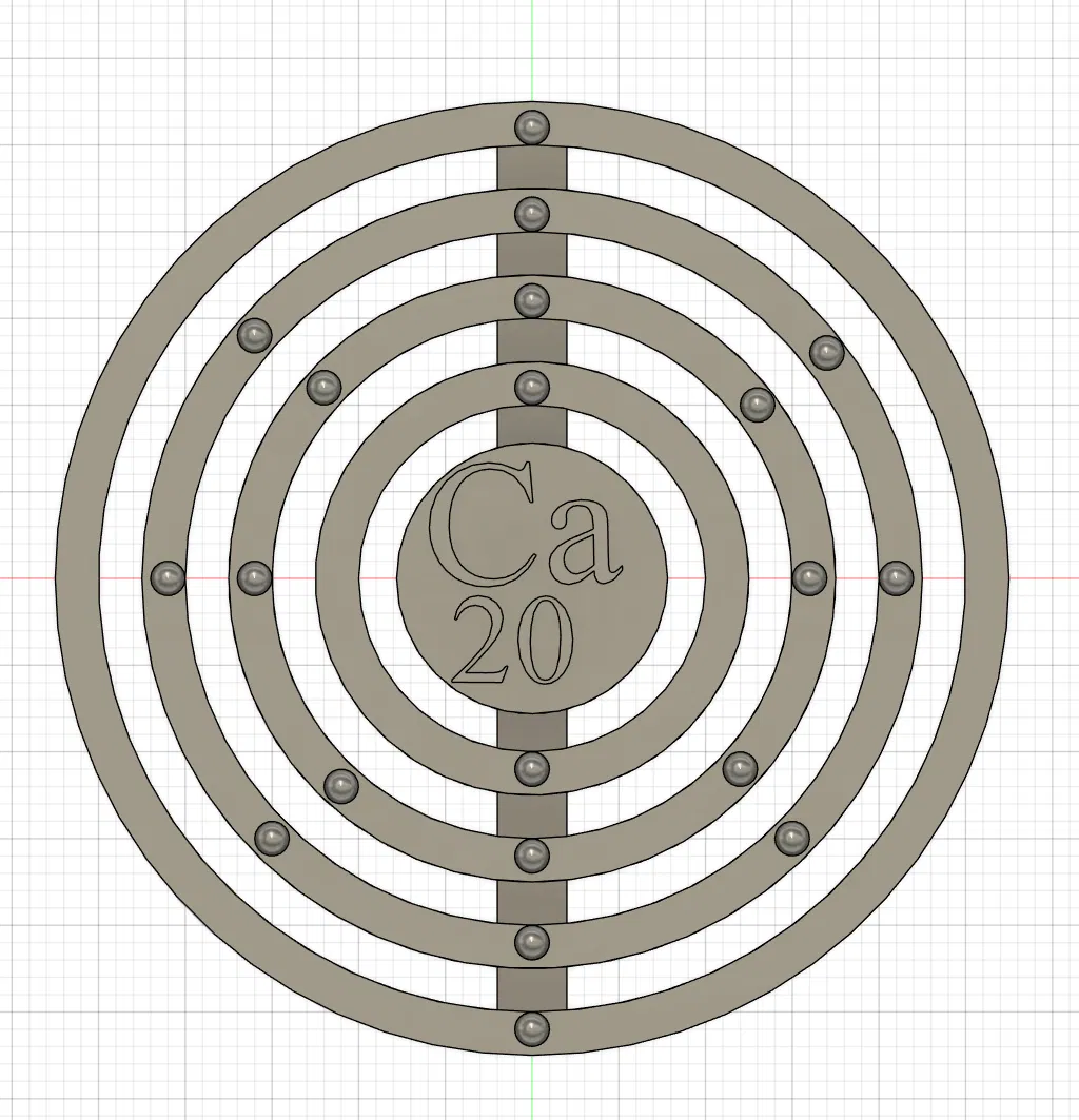 Mô hình nguyên tử Canxi theo Bohr này là một dự án Fusion 360 đầu tiên, dễ in, scale lên 181.84% để đọc chữ dễ dàng. Tuyệt vời cho ai yêu thích hóa học, vật lý và khoa học.