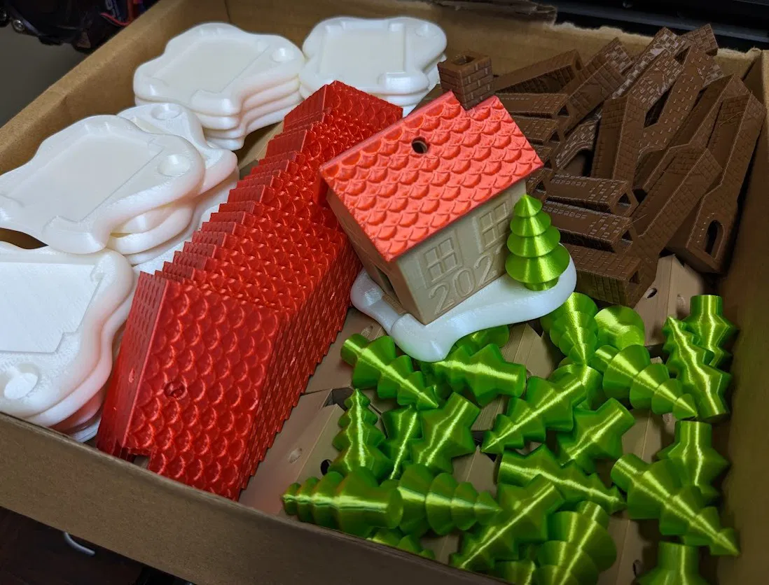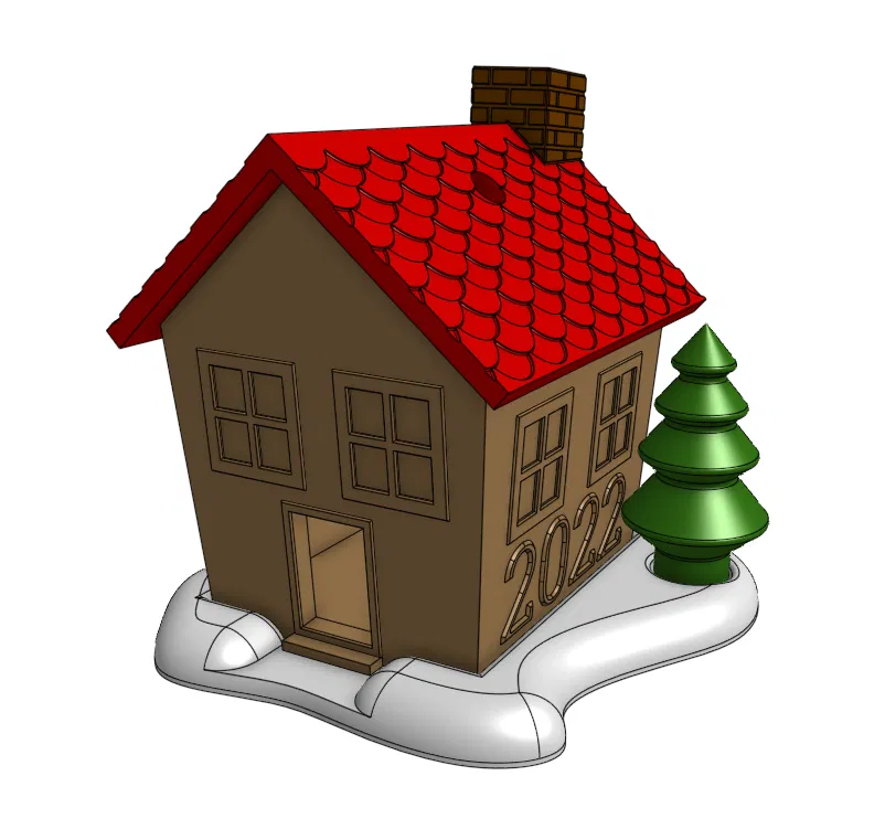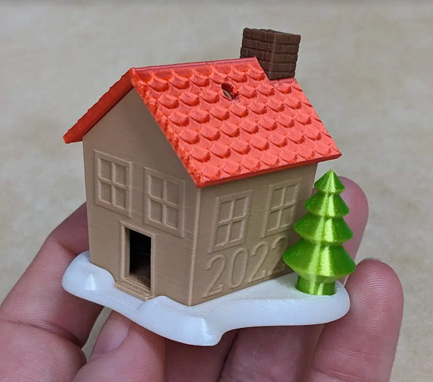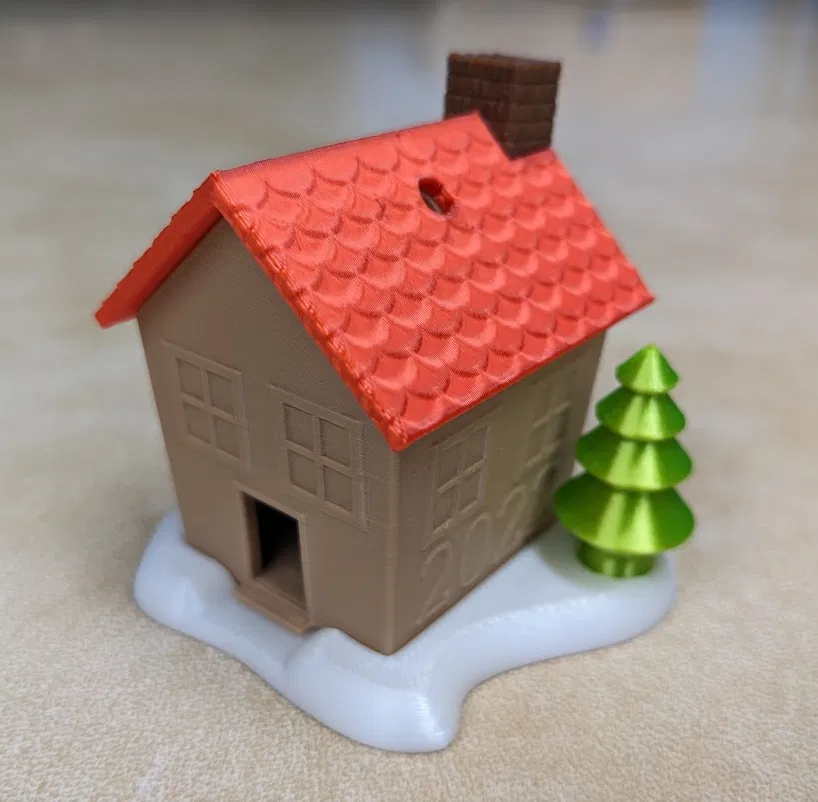Tạo món đồ trang trí Giáng sinh độc đáo theo chủ đề nhà bánh gừng, có chỗ để khắc tên và năm. Mô hình đa bộ phận, đa màu sắc này dễ dàng lắp ráp với khe hở 0.2mm. Bạn có thể tùy chỉnh thiết kế gốc trên Onshape hoặc sử dụng tệp STL/Step đi kèm. Phiên bản mái nhà không lỗ cũng có sẵn để trưng bày.