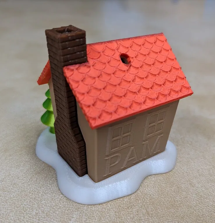 extit{Cập nhật}: Tôi đã thêm một phiên bản mái nhà không có lỗ cho những người in mô hình này để trưng bày trên kệ hơn là làm đồ trang trí cây thông Noel.