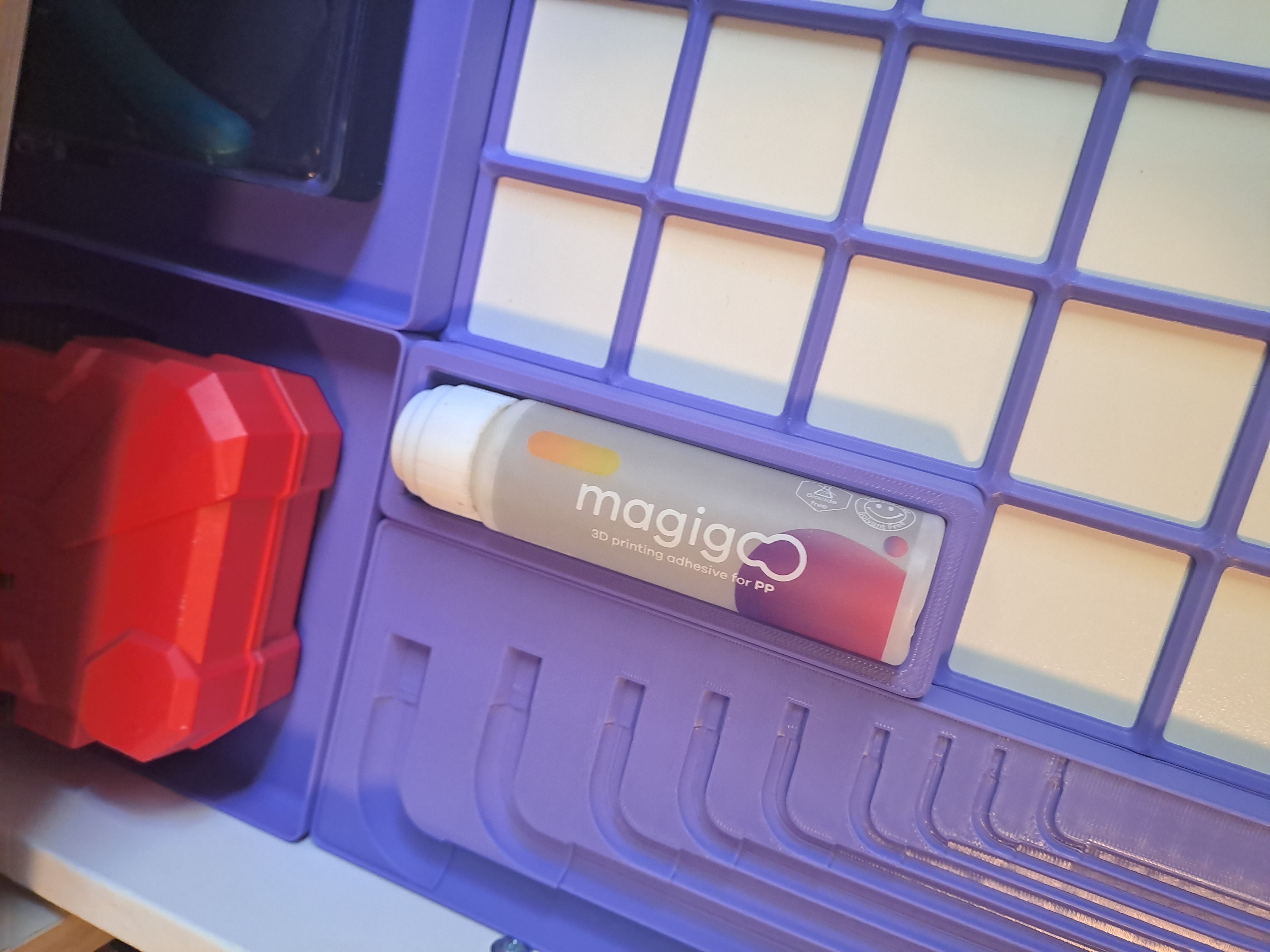 Cái khay này được tạo ra bằng GridfinityGenerator (https://apps.autodesk.com/FUSION/en/Detail/Index?id=7197558650811789&os=Win64&appLang=en) rồi chỉnh sửa lại cho vừa với cây keo Magigoo nha.