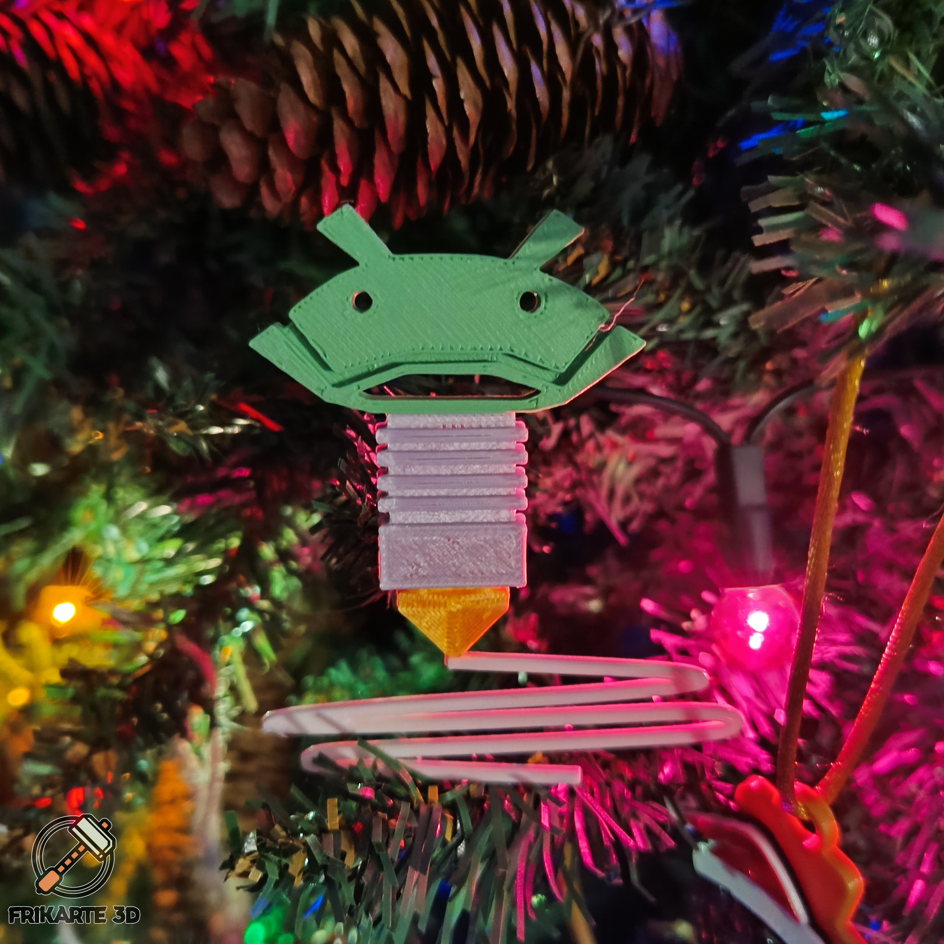 FLSUN Santa là mô hình có thể in 3D, bạn có thể tải về và in bằng bất kỳ máy in 3D và sợi nhựa nào. Dễ dàng in và sử dụng, bạn có thể in với bất kỳ màu sắc nào bạn thích. Bạn cũng có thể in với nhiều màu sắc và sự kết hợp khác nhau để phù hợp với máy in FLSUN của mình. Mô hình trong ảnh được in với phần sợi nhựa màu trắng, đầu phun màu vàng lụa, bộ tản nhiệt màu bạc lụa, mặt màu xanh lá và mũ với hai màu trắng đỏ. Chỉ cần in mỗi bộ phận một cái và dán lại với nhau để có được thành phẩm như trong ảnh. Chiếc mũ được thiết kế để in bằng cách tạm dừng khi in ở độ cao nhất định để đổi màu từ trắng sang đỏ cho ba lớp cuối.