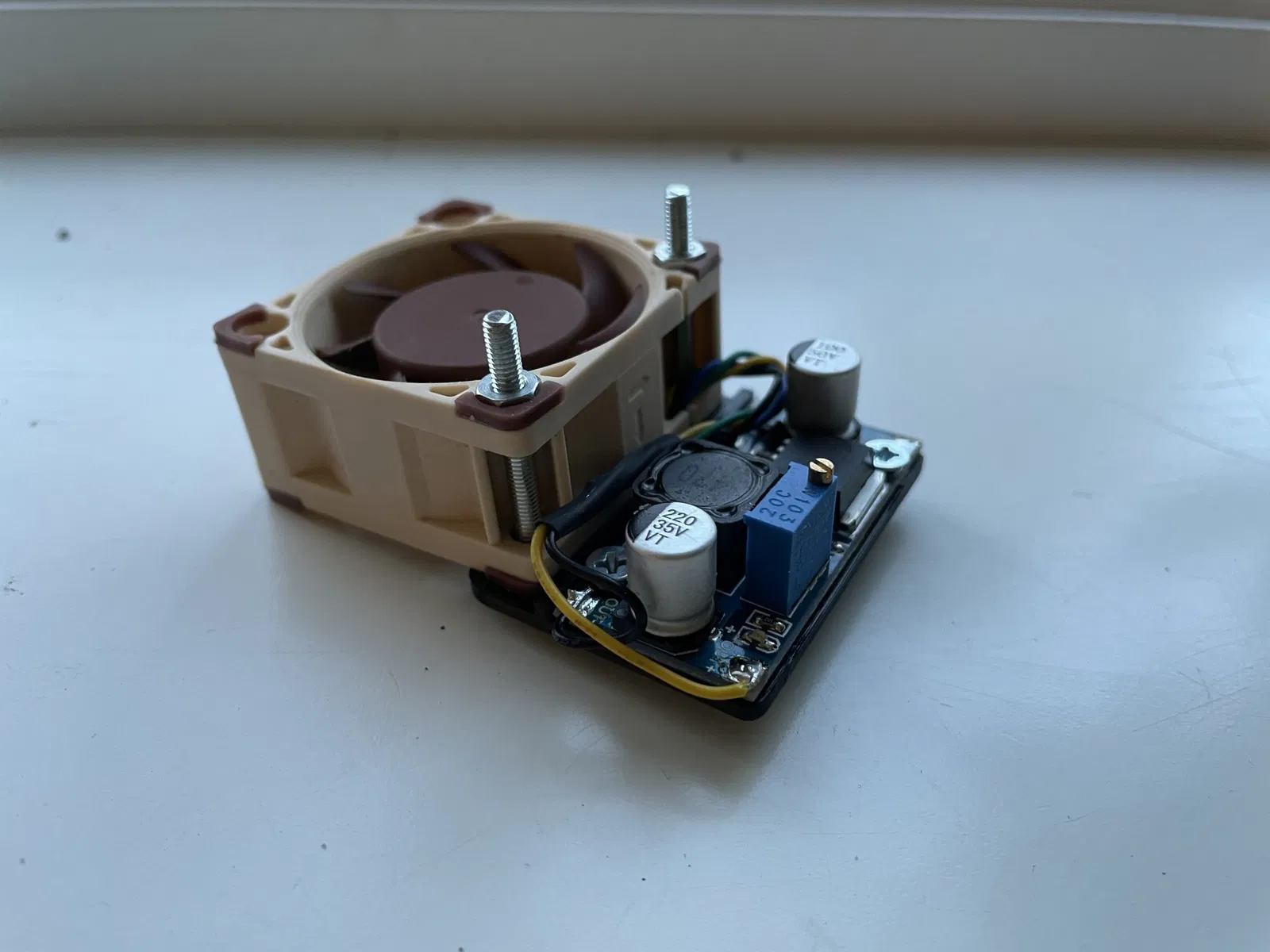 Khung này có thể gắn bộ chuyển đổi điện áp DC-DC trực tiếp vào quạt của bạn.