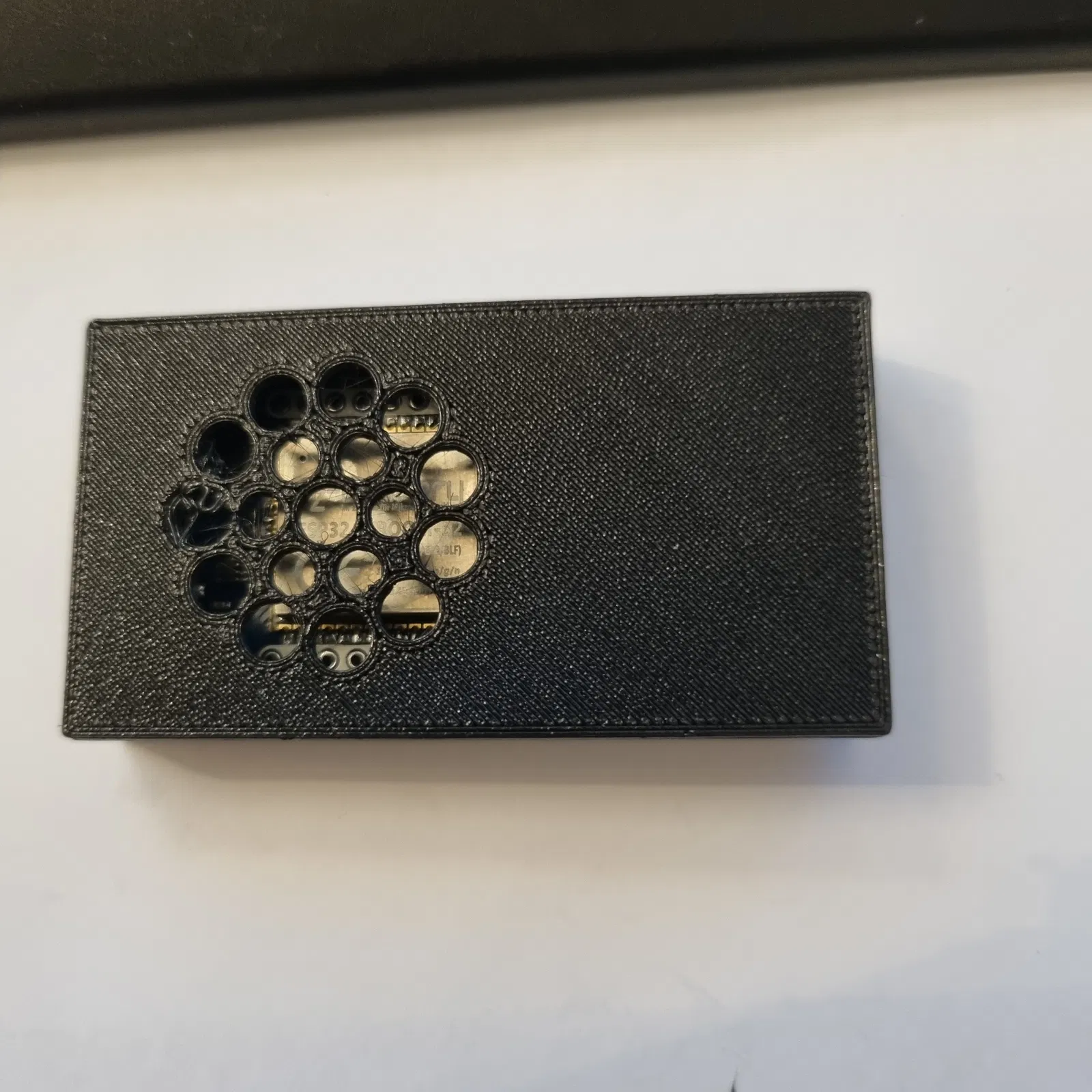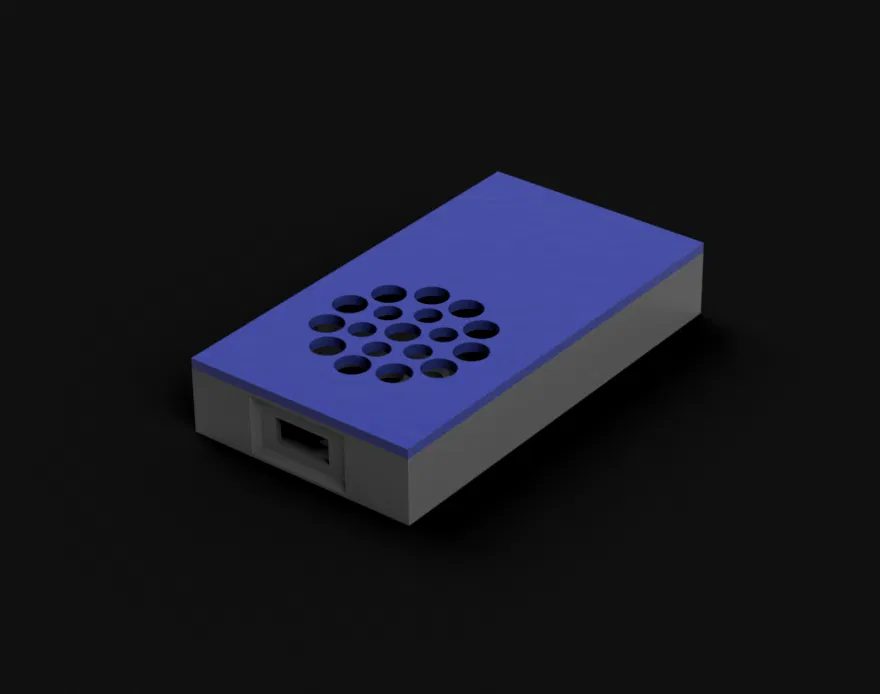 Vỏ có khoét lỗ cho micro USB (sẽ thêm phiên bản USBC sau) và khoét lỗ cho đầu nối JST 3 chân, có thêm gờ và thanh đỡ nhỏ ở nắp để giữ cố định.