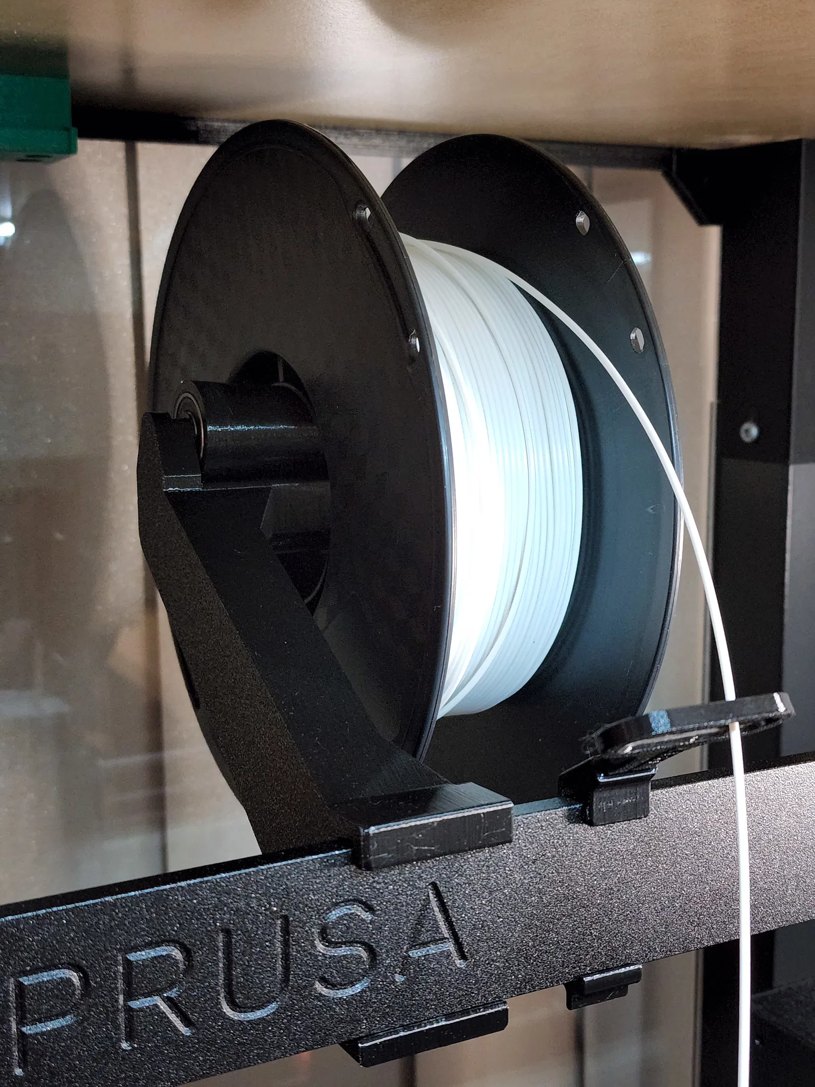 Phiên bản gốc của Prusa Research có một thanh đỡ cố định, nơi phần bên trong của cuộn dây nhựa sẽ tì vào đó. Khi đầu đùn kéo dây nhựa từ cuộn, phần bên trong của cuộn dây sẽ cọ xát vào thanh đỡ cố định này. Ma sát giữa cuộn dây nhựa và giá đỡ gây ra một lực cản nhỏ khi cấp dây. Thông thường thì điều này không gây vấn đề gì lớn, nhưng nó có thể ảnh hưởng đến tốc độ in nhanh hơn đối với các loại nhựa như TPU, vì bản chất dẻo của sợi nhựa có thể bị tác động nhiều hơn bởi lực cản này.