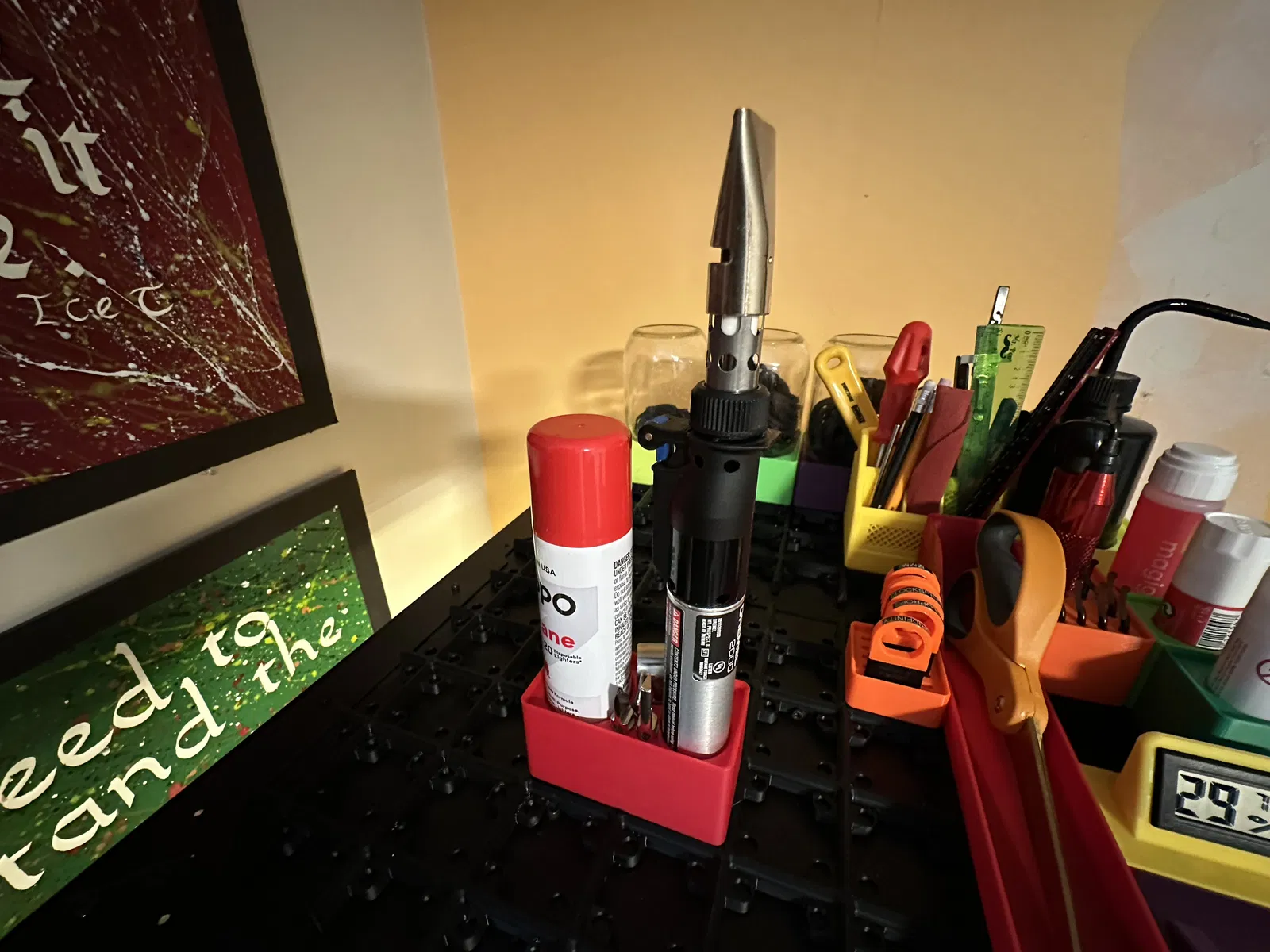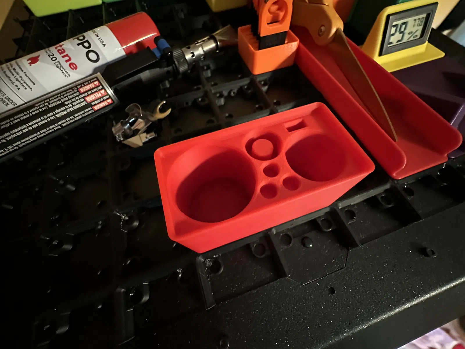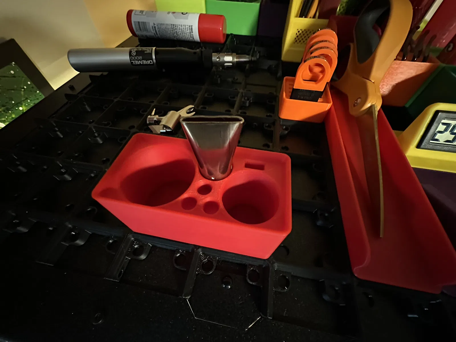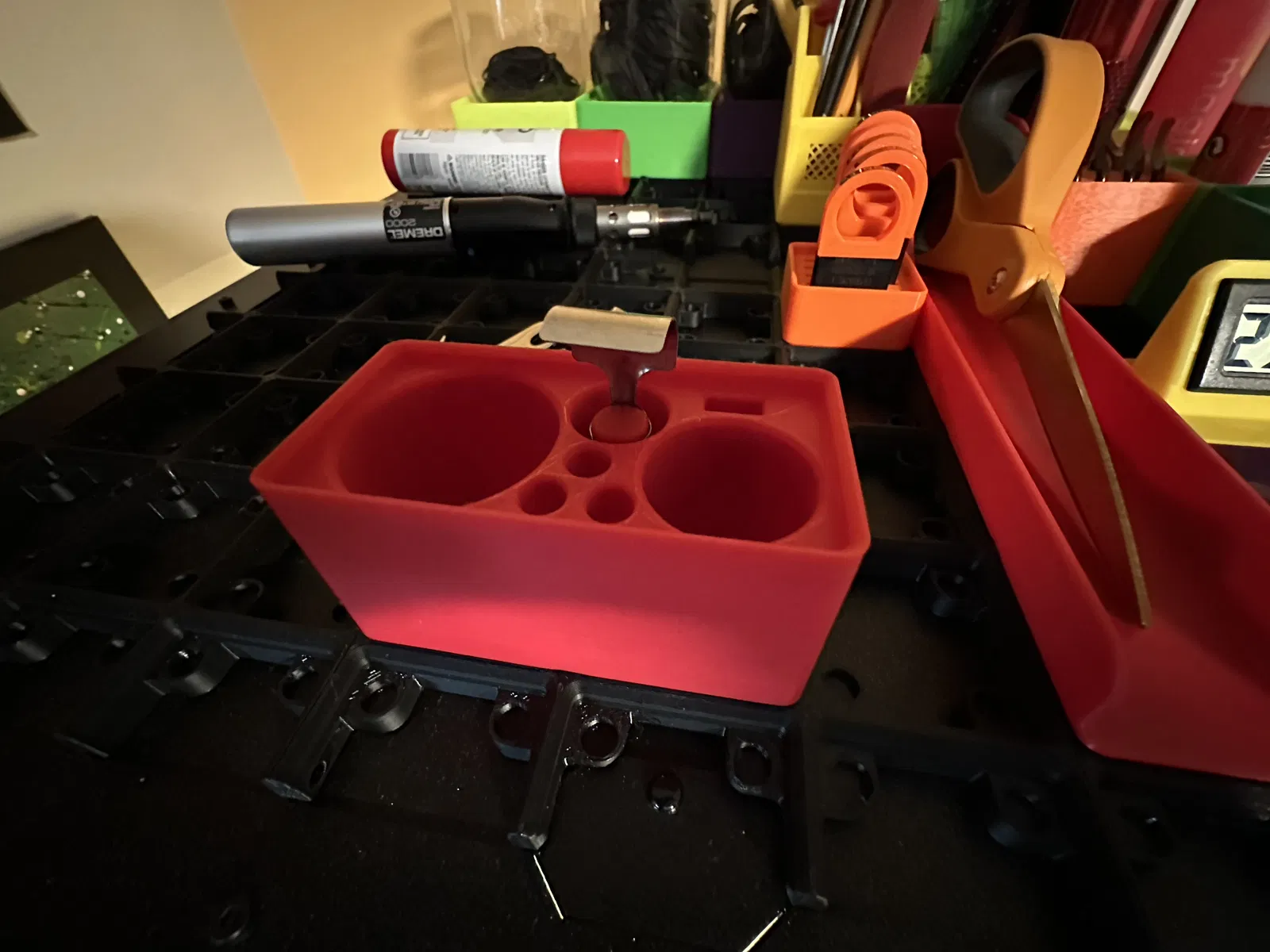 Cái này có thể là một món đồ giữ đồ hơi bị đặc thù á. Nhưng mà... nếu mà bạn có cái Gridfinity, cái đèn khò dremel xịn sò, với một bình xăng dự phòng. THÌ ĐÂY là cái chỗ giữ đồ dành cho bạn!
