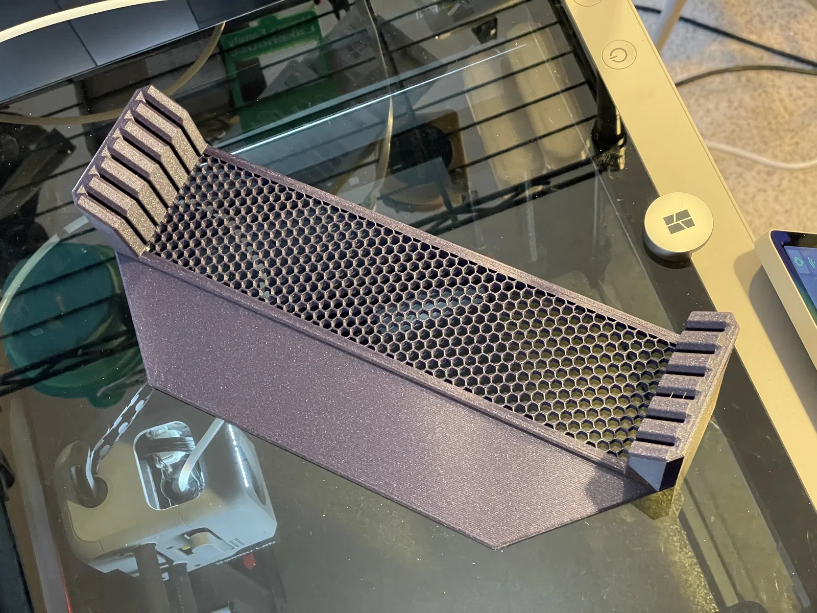 Bản in màu tím trong ảnh là phiên bản trước đó với 6 khe cắm và lưỡi dài 2 inch thay vì 1 inch, và infill đi hơi dưới các trụ thay vì kết thúc sớm hơn chúng. Lẽ ra tôi nên tải ảnh mới lên.