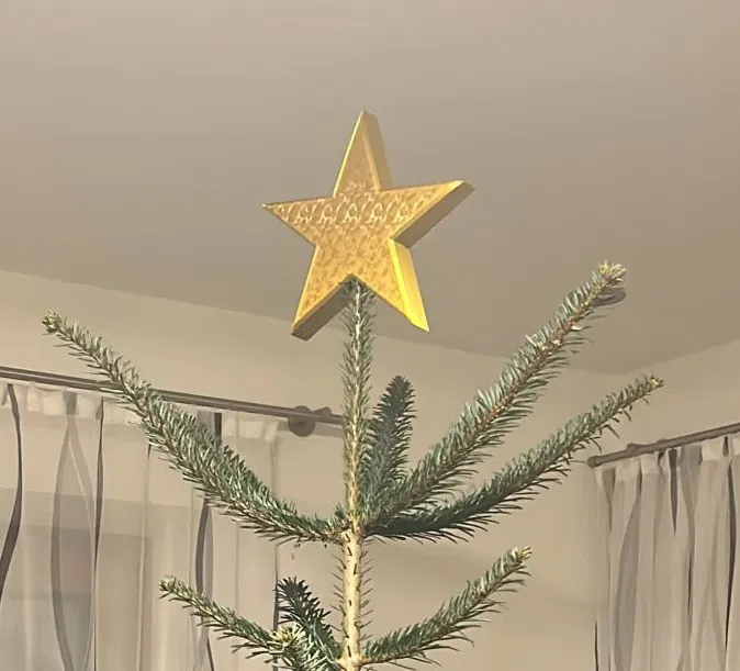 Mẫu ngôi sao Giáng Sinh trang trí đỉnh cây này in dễ lắm, không cần support. Kích thước gốc tối đa 228.26mm, lỗ khoét 30mm. Bạn có thể scale tùy ý cho vừa với cây thông nhà mình nha.
