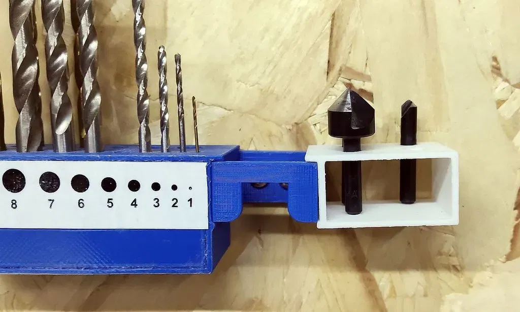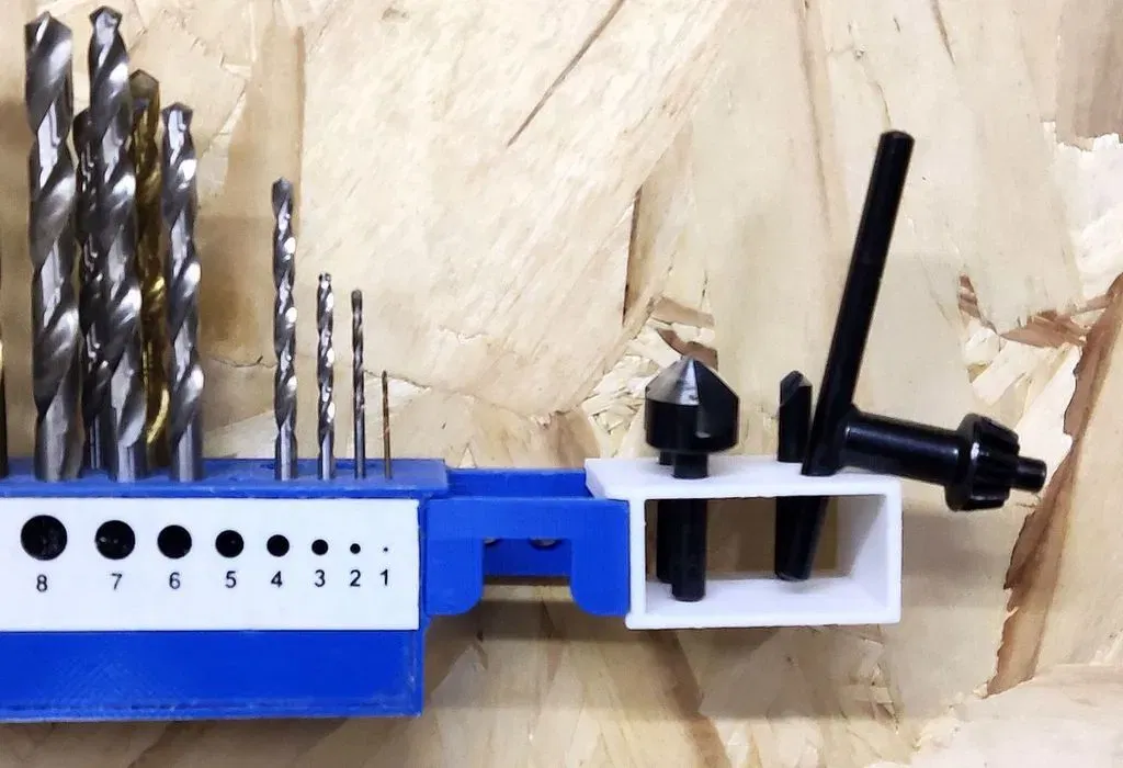 Cập nhật hộp chứa trên tường cho các mũi khoan, tôi đã thêm một giá đỡ cho các mũi khoan vát từ 6 - 12 - 16 với chân 6mm