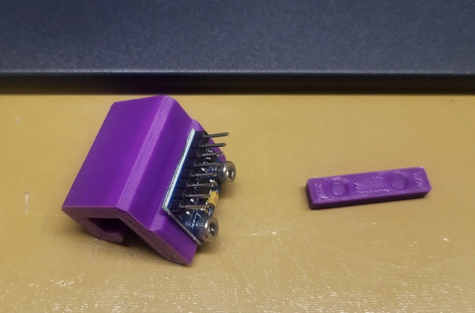 Một vài mount cho trục X và Y của Sovol SV04. Tui định gắn cái mount trục X luôn, nên có khoét lỗ để luồn dây rút giữ dây điện gọn gàng. Còn cái mount trục Y thì chỉ là dạng kẹp tạm thời thôi.