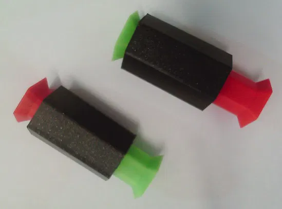 Ý tưởng là phần thân chính in màu trung tính, còn hai phần kia in hai màu đối lập. Tôi chọn màu đỏ (chưa sẵn sàng) và màu xanh lá (sẵn sàng). Cái rãnh và khe giữ hai phần này cho phép bạn gắn một cái vào thân chính rồi trượt cái còn lại từ đầu kia vào, bấm lại với nhau. Nó sẽ có đủ độ rơ để di chuyển tự do bên trong như một khối duy nhất và giữ nguyên vị trí.