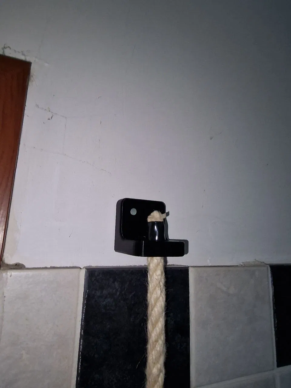 Cách để giấy vệ sinh lên kệ? Chỉ cần uốn sợi dây thừng dọc theo kệ và luồn chúng qua giữa cuộn giấy, trượt cuộn giấy cho đến khi nó chạm đến đỉnh của kệ mong muốn và thế là xong, kệ sẽ đỡ cuộn giấy khi đặt nằm ngang sau khi luồn.