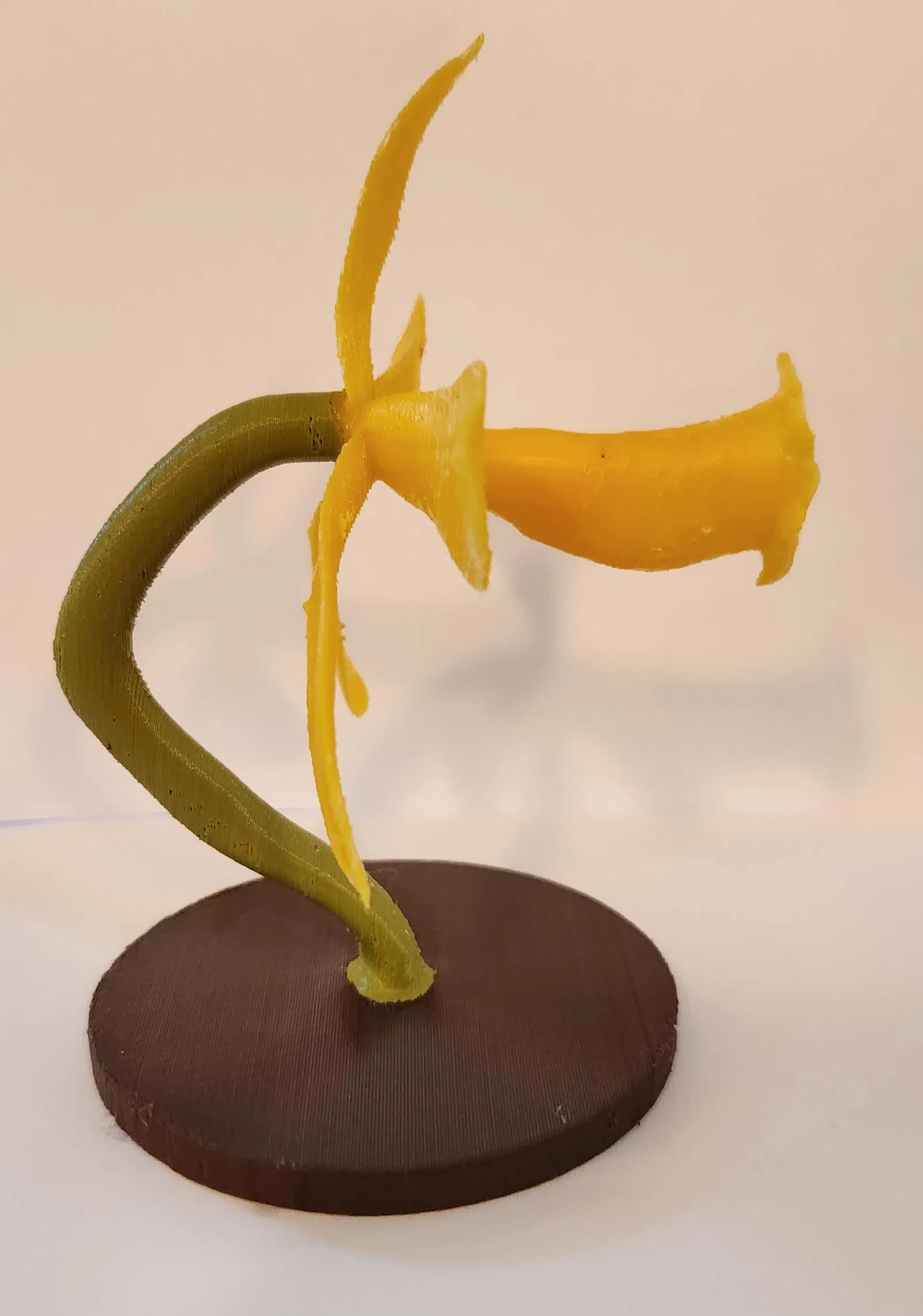 Mô hình cây lan hồ điệp đứng, lấy cảm hứng từ hoa lan vani, được in bằng máy Prusa MKS3+ với PLA và hỗ trợ PVA. Phiên bản này tập trung vào việc hỗ trợ tối đa cho cánh hoa.