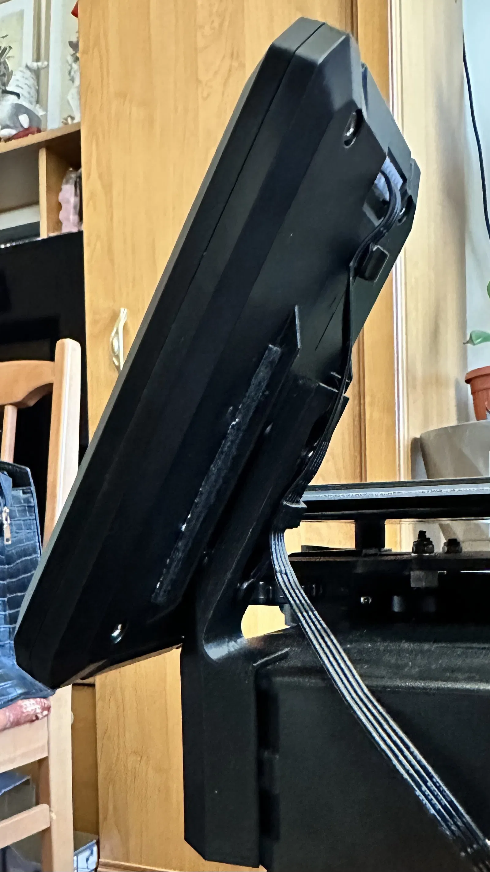 Do tui muốn giảm bớt diện tích của máy in để vừa với tủ nên tui đã chỉnh sửa lại thiết kế của Feuillo và thêm cái kẹp dây cáp phía sau màn hình.