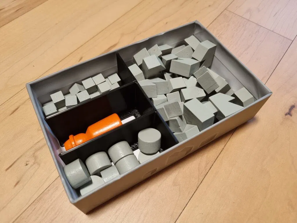 Đây là một bộ sắp xếp (organizer) cho trò chơi cờ bàn La Famiglia. Nó được thiết kế để vừa với hộp giấy hiện có và tôi đã cố gắng giảm thiểu lượng filament sử dụng (~140g) cũng như tăng tốc độ thiết lập.