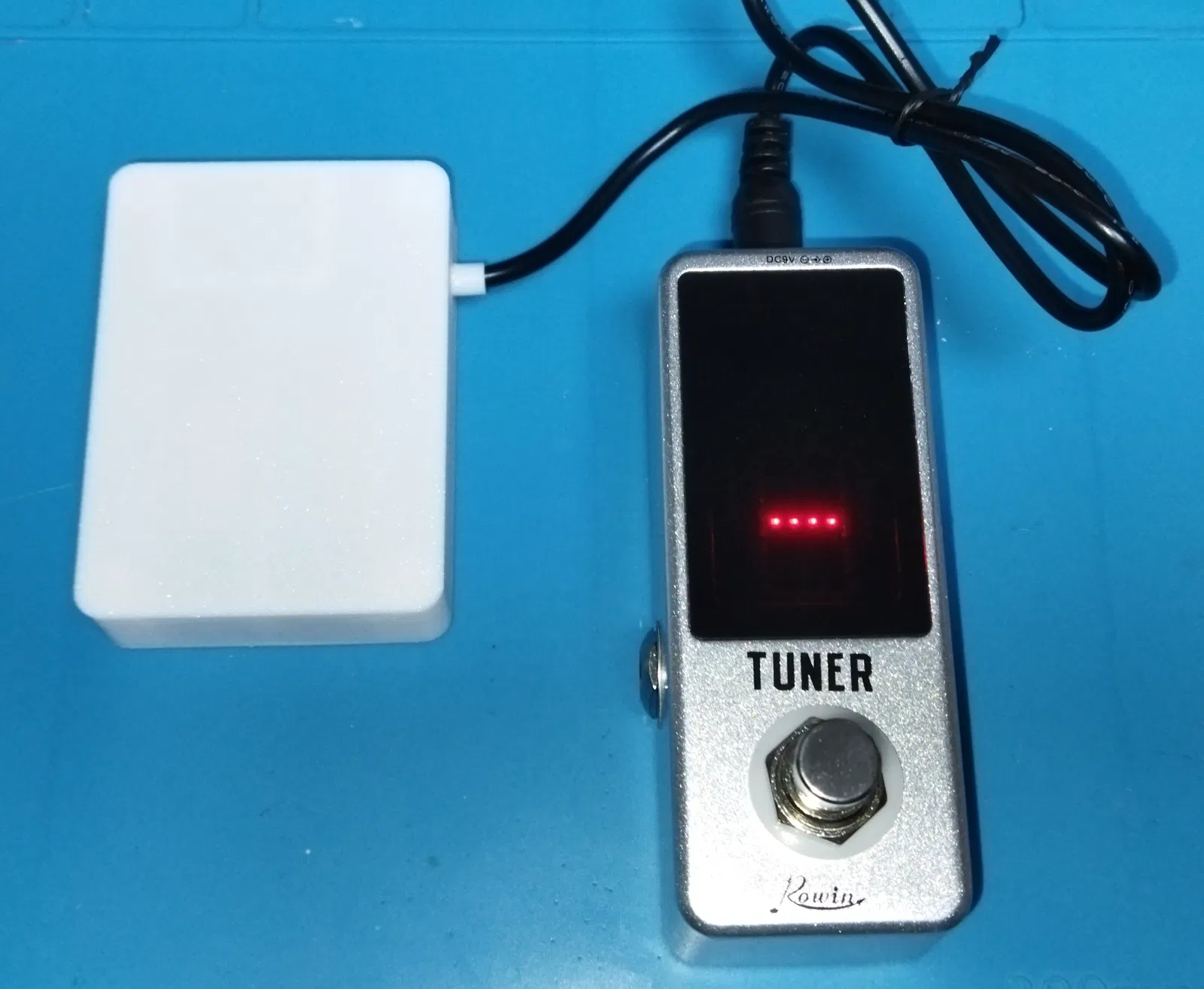 Đây là bộ nguồn sạc, được thiết kế để cung cấp 9VDC cho các bàn đạp guitar tiêu chuẩn. Nó được cấp nguồn bởi một cặp pin LiPo 13400 (có thể thu hồi từ các vape 'dùng một lần' đã qua sử dụng), cùng với bảng mạch sạc và tăng áp tích hợp (dựa trên chip sạc an toàn TP4056). Hiện tại tôi đang thử nghiệm xem bộ nguồn này sẽ cấp điện cho bàn đạp tuner chromatic của tôi trong bao lâu - ít nhất là vài giờ, tôi sẽ báo cáo lại khi có số liệu chính xác hơn. CẬP NHẬT: bàn đạp vẫn hoạt động sau mười lăm giờ kết nối với bộ nguồn (chỉ dùng pin). Chắc chắn các bàn đạp khác có thể tiêu thụ nhiều điện hơn một bàn đạp tuner chromatic đơn giản, nhưng đối với mục đích của tôi, tôi tuyên bố chiến thắng. Vui lòng cho tôi biết kinh nghiệm của bạn với các bàn đạp khác!