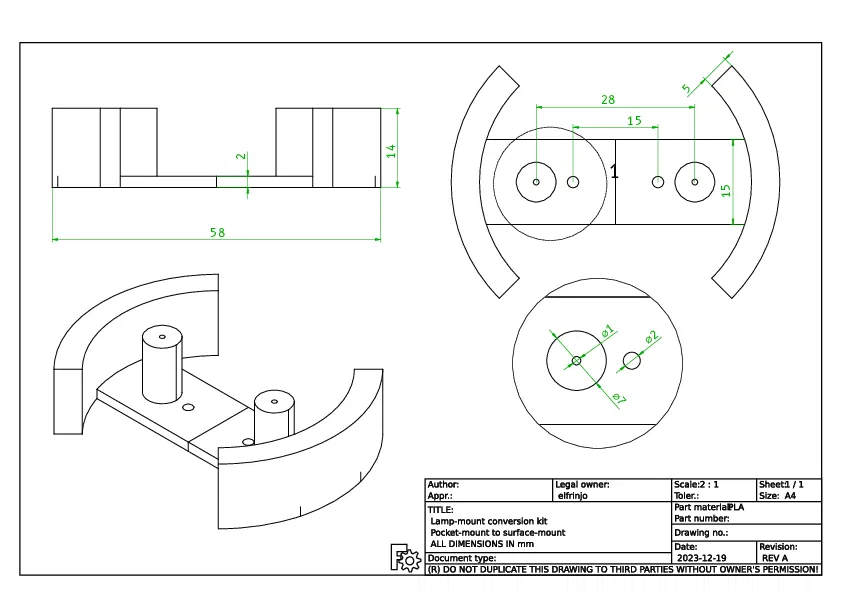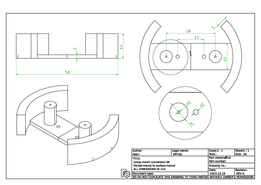 - File 3mf đi kèm thì vừa với nhu cầu của tui (sâu 14mm, đường kính 58mm). Bạn có thể chỉnh lại kích thước trong cái bảng tính của file FreeCAD nha.