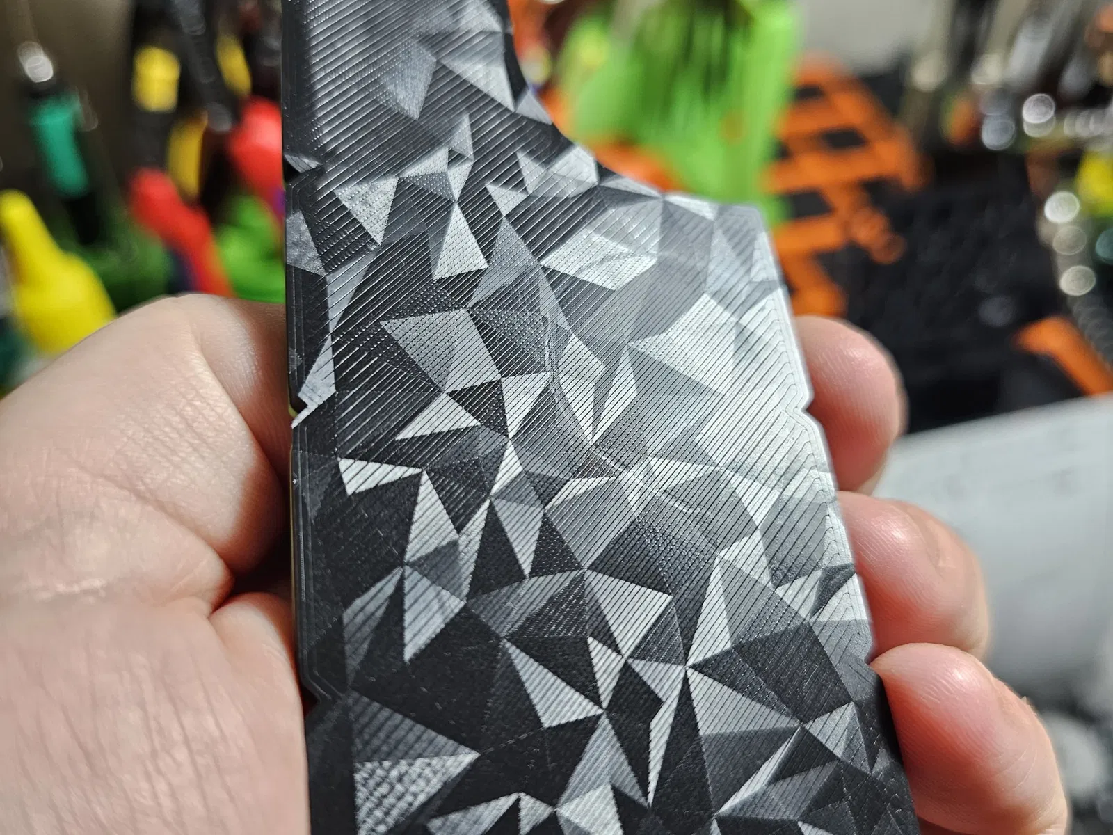 Lưu ý rằng mẫu bề mặt dưới trong ảnh không phải là một phần của STL, đó là một bản chuyển từ một tấm PEI có kết cấu mà tôi đã sử dụng (bạn có thể tìm thấy những cái này với giá rẻ trên AliExpress).