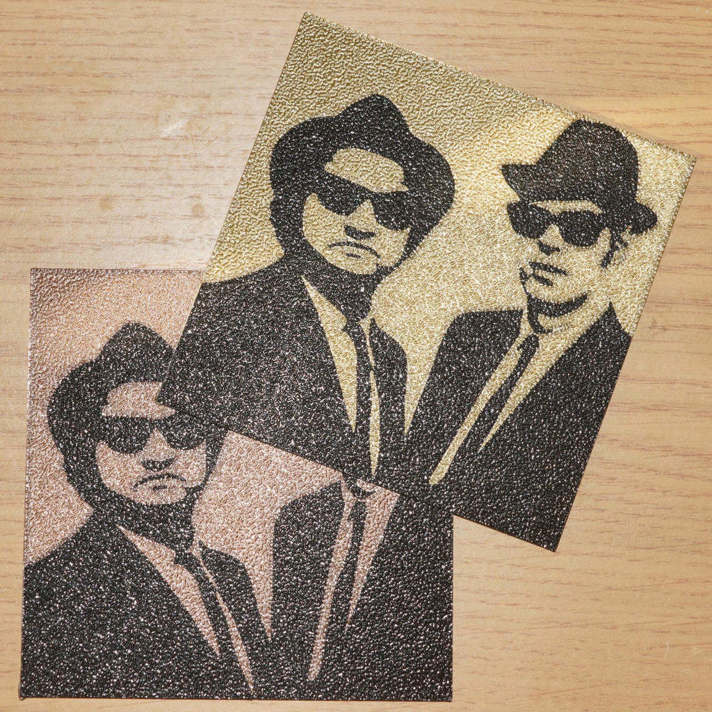 Một chiếc đế lót ly Blues Brothers in hai màu.