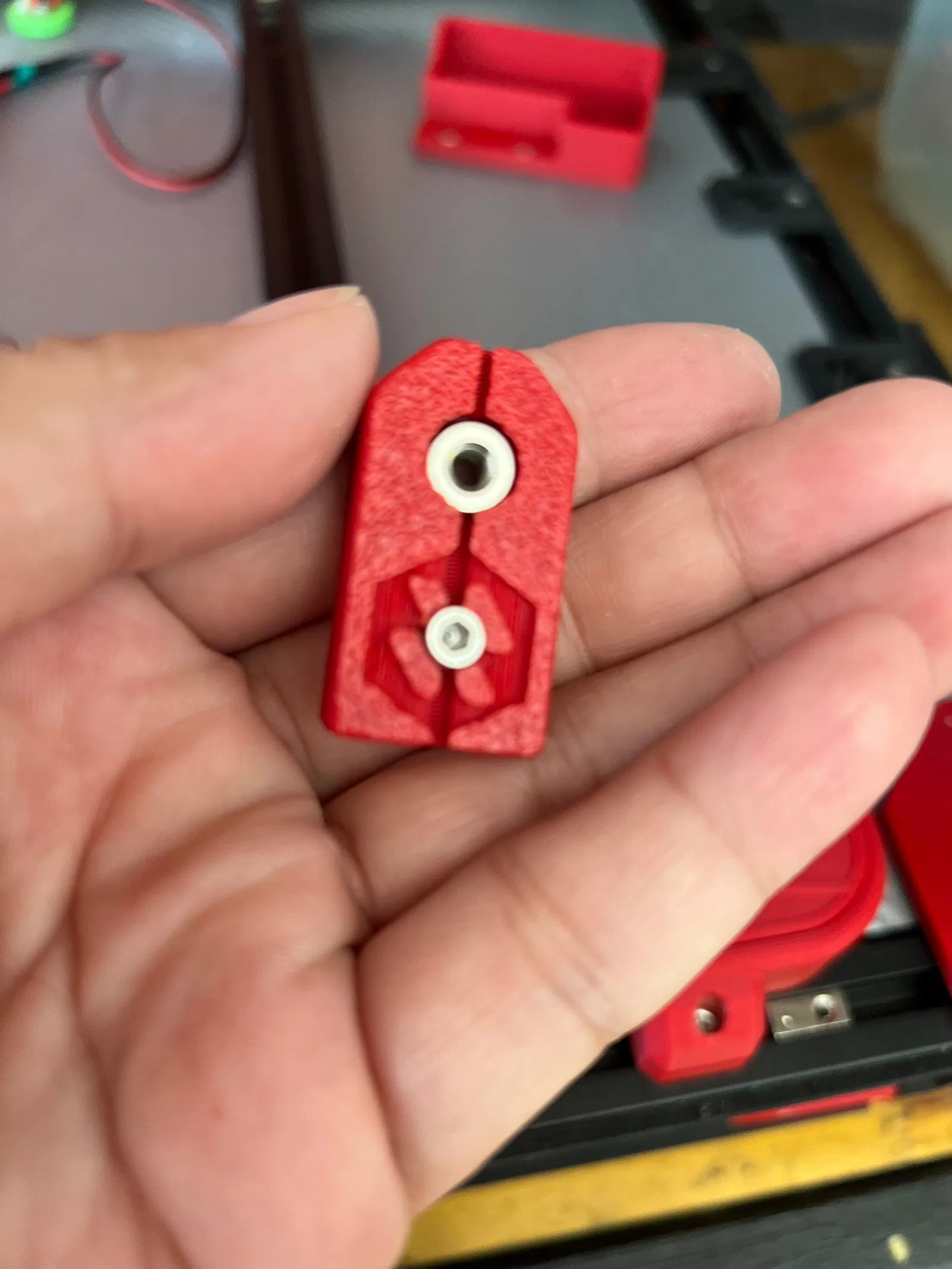 Phụ kiện giữ đai ốc đế cho Voron 2.4/2.4R2, giúp cố định đai ốc khi tháo lắp tấm che. Giải pháp hữu ích, đặc biệt khi sử dụng T-Nuts và đai ốc búa, đảm bảo phụ kiện không chạm vào đế và giảm thiểu khó khăn khi lắp ráp.