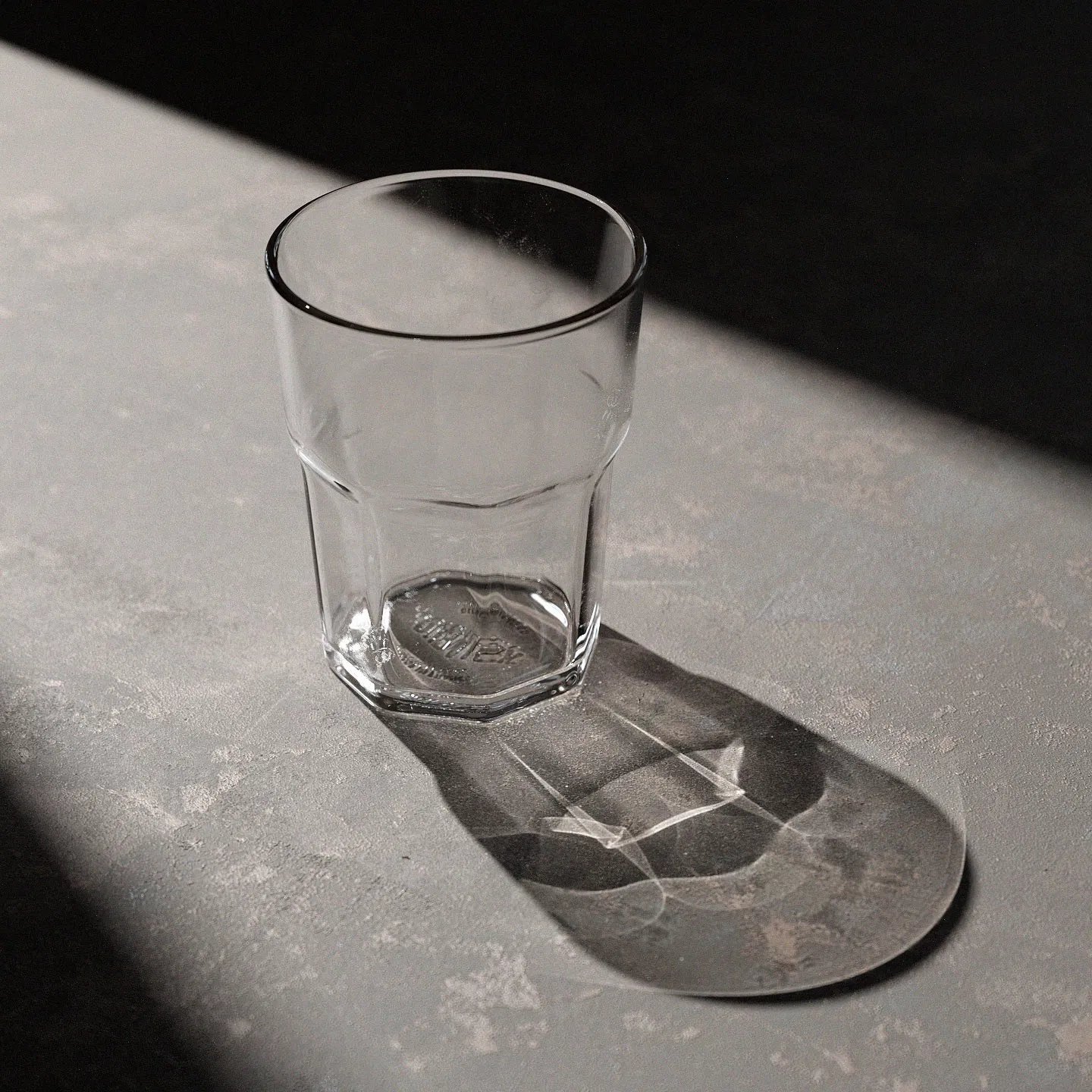 Ly thủy tinh 8 cạnh kiểu Ikea, hiệu Duralex chất lượng cao. Có bản đồ lồi logo và vết bẩn. Hoàn hảo cho việc in 3D các vật dụng gia đình.