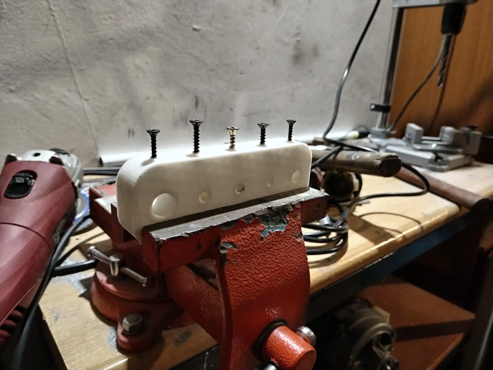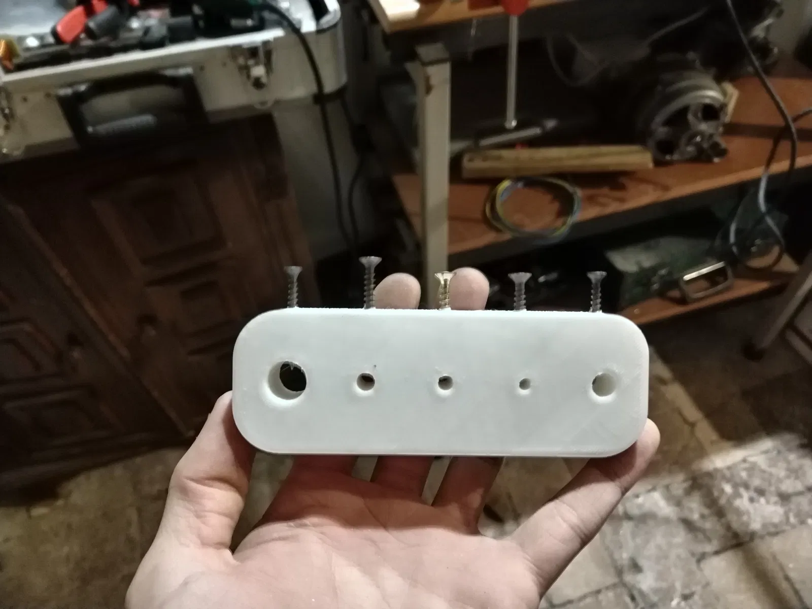 Cái này cần 5 con vít tự khoan để gắn vô mấy cái lỗ nhỏ phía trên, sao cho cái đầu vít nhú ra một chút để cắt dây cáp.