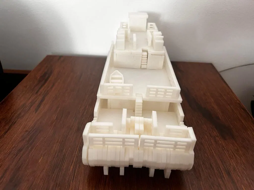 Mô hình thuyền đẩy hàng 3D, có thể làm đèn hoặc câu đố. Kích thước khoảng 290mm dài. Tỷ lệ lớp khuyến nghị 0.1mm, độ điền đầy 5-10% cho bề mặt mịn.