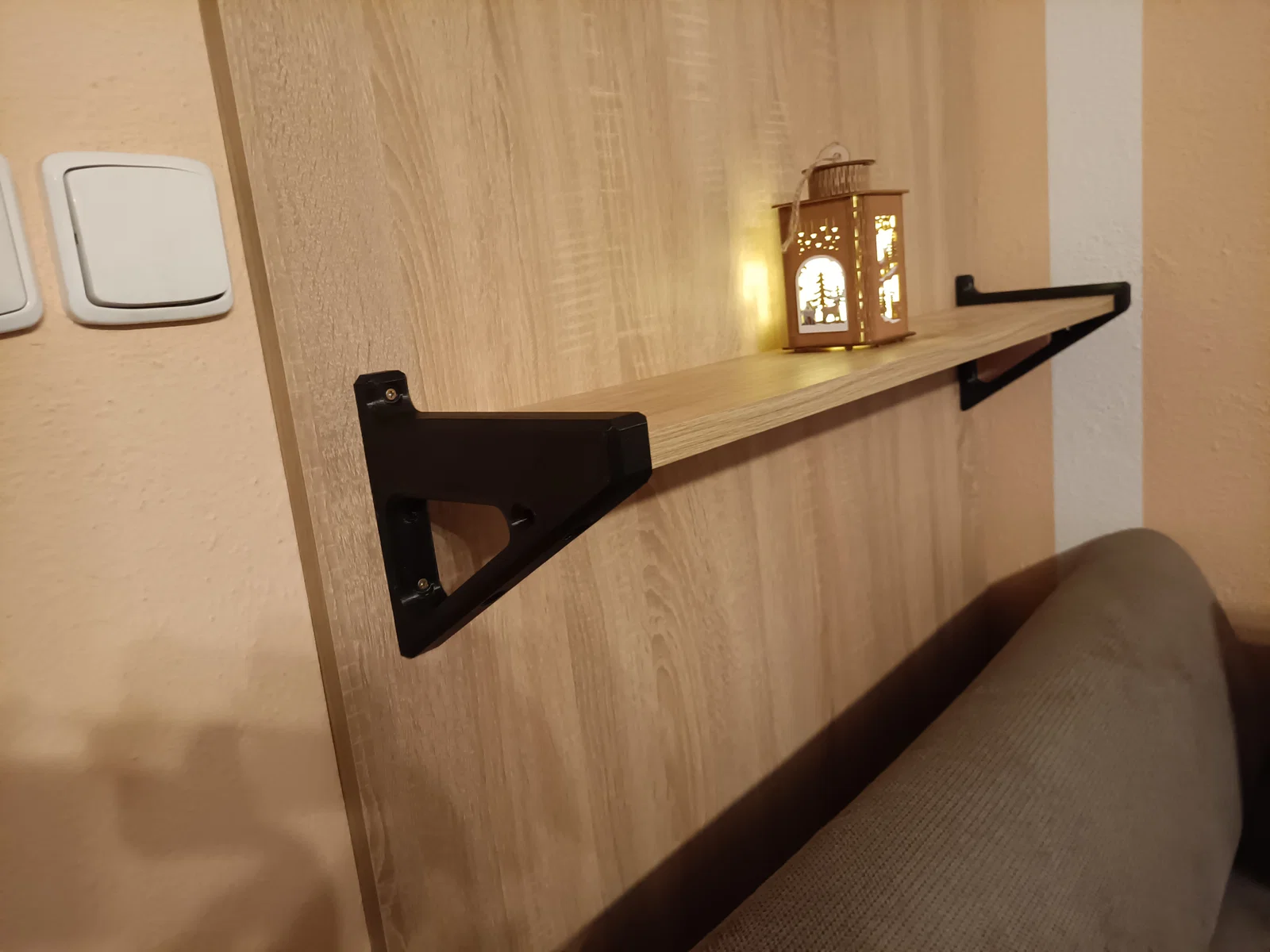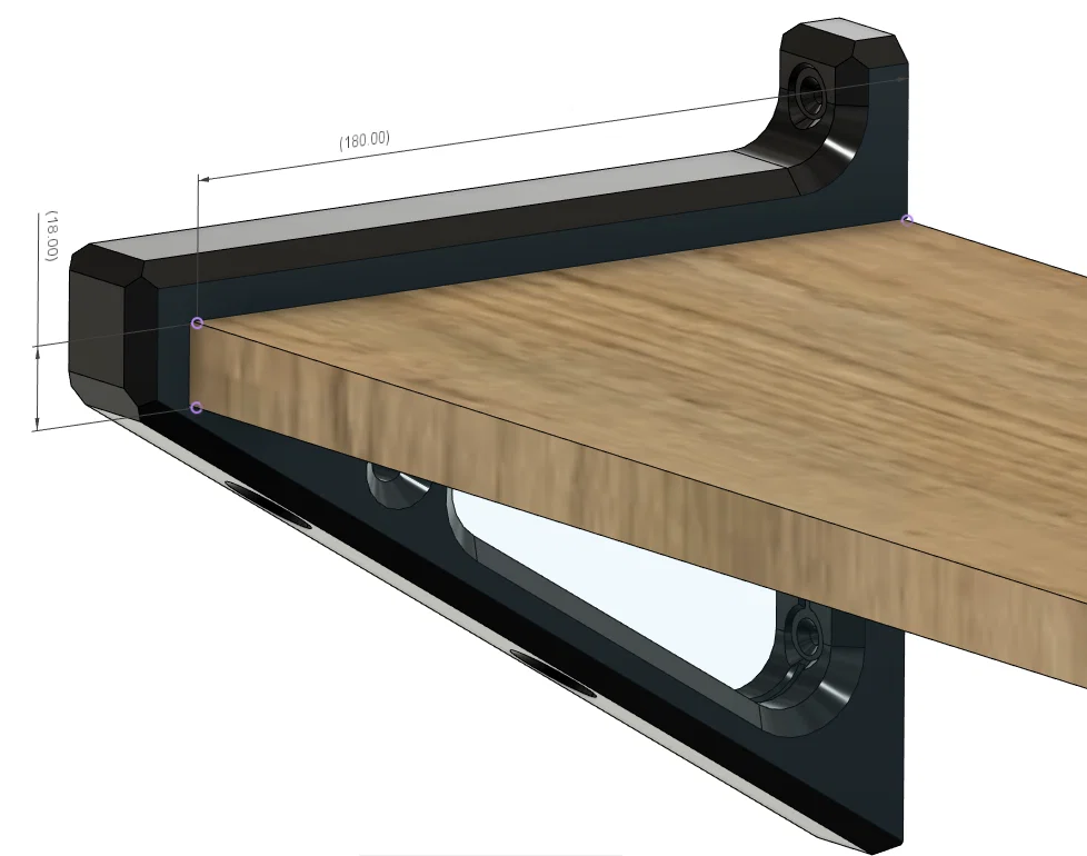 Giá đỡ kệ này được làm từ tấm laminate có kích thước 18x180mm. Các lỗ để gắn bộ phận này là dành cho vít chìm có đường kính 4mm.