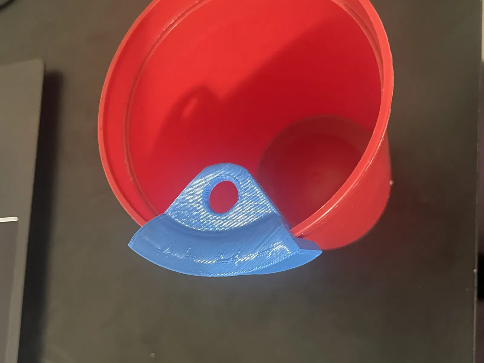 Phiên bản mới này được thiết kế để in ở bên hông, vì vậy không cần hỗ trợ, và dễ in hơn. Nó nên vừa với hầu hết các cốc nhựa nhỏ. Phiên bản đã được sửa đổi thì sâu và rộng hơn một chút để vừa với các cốc rộng hơn một chút và ngồi vững vàng hơn trong các cốc. Nó có thể được điều chỉnh trong cài đặt in để phù hợp với các kích thước cốc khác nhau.
