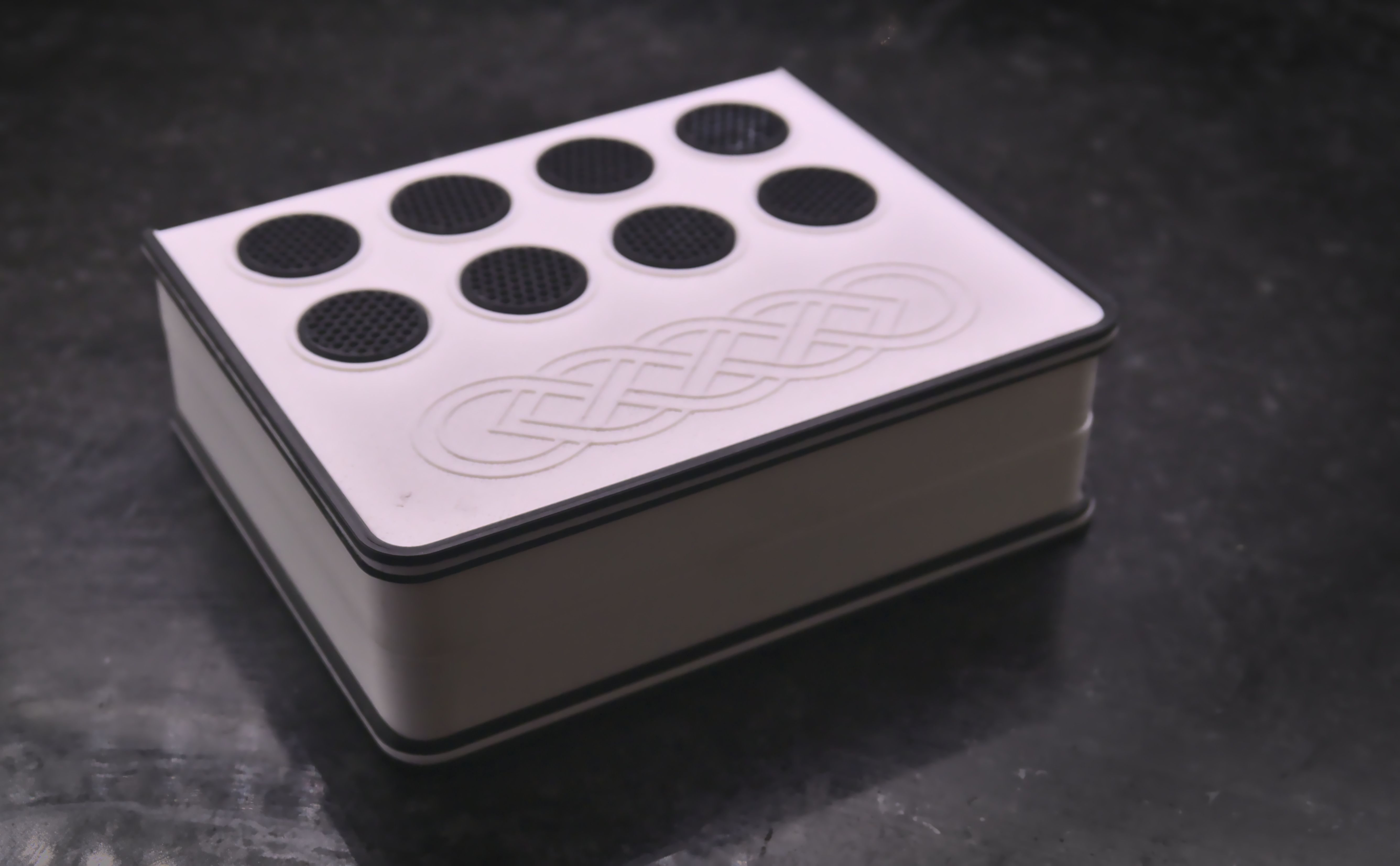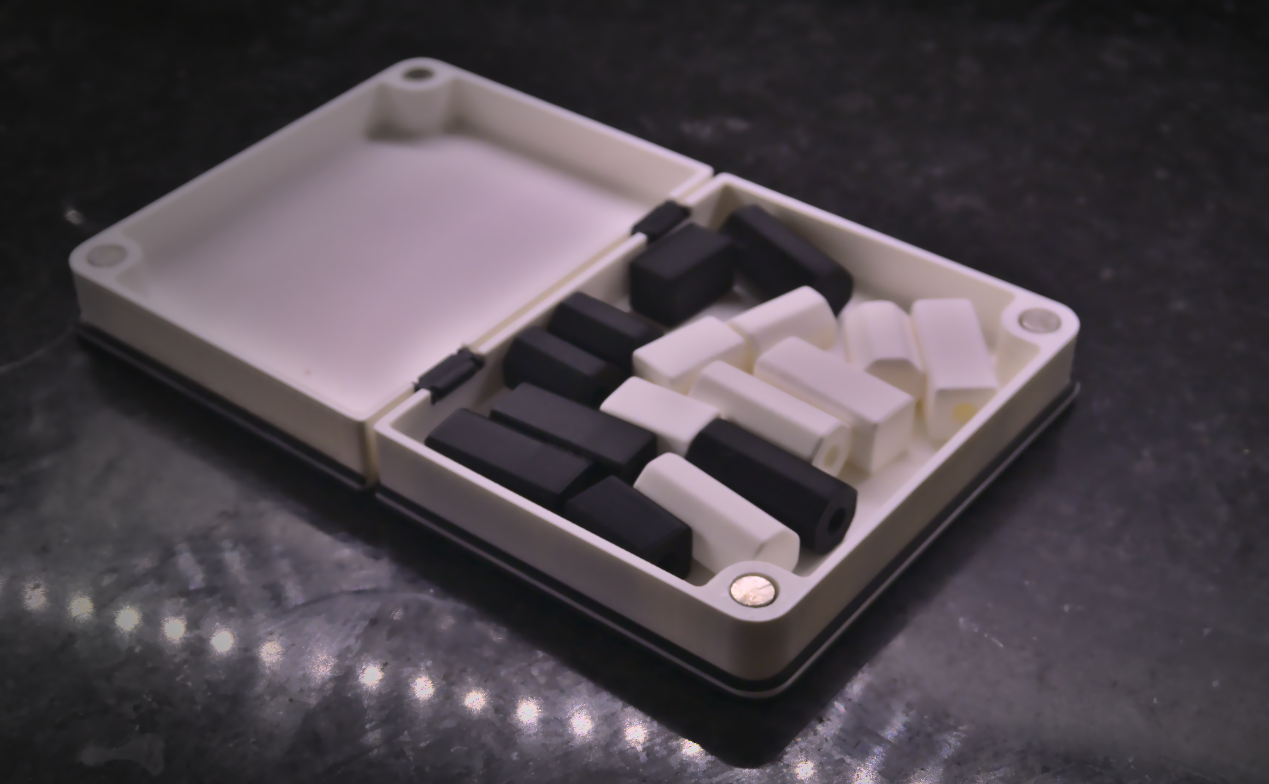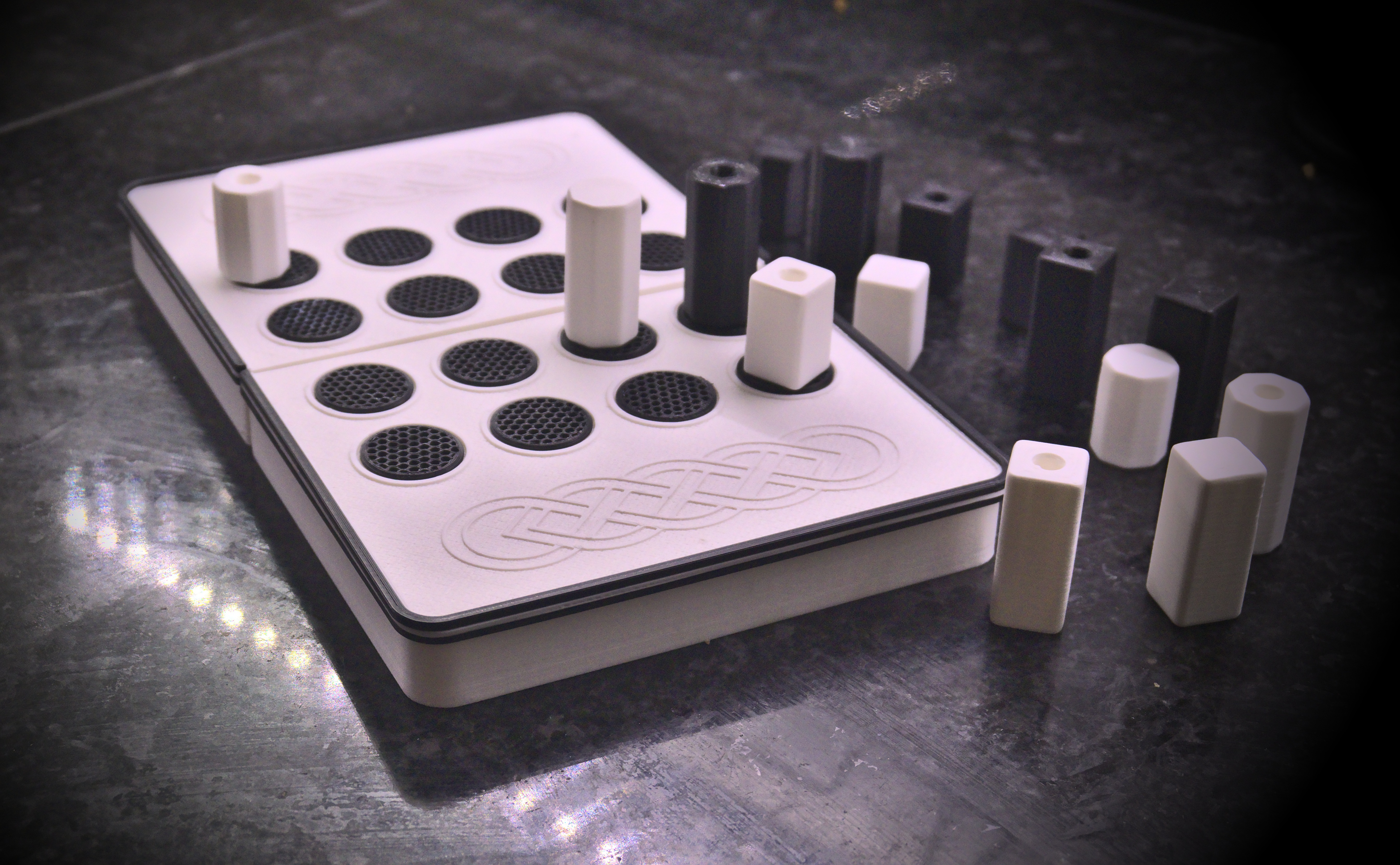 Tái hiện lại bàn cờ "Quarto" với bộ game đầy đủ. Hộp đựng kiêm luôn bàn cờ, các quân cờ có thể in riêng lẻ hoặc theo lô. Cần dán keo để lắp hộp và dùng 4 nam châm để đóng mở.