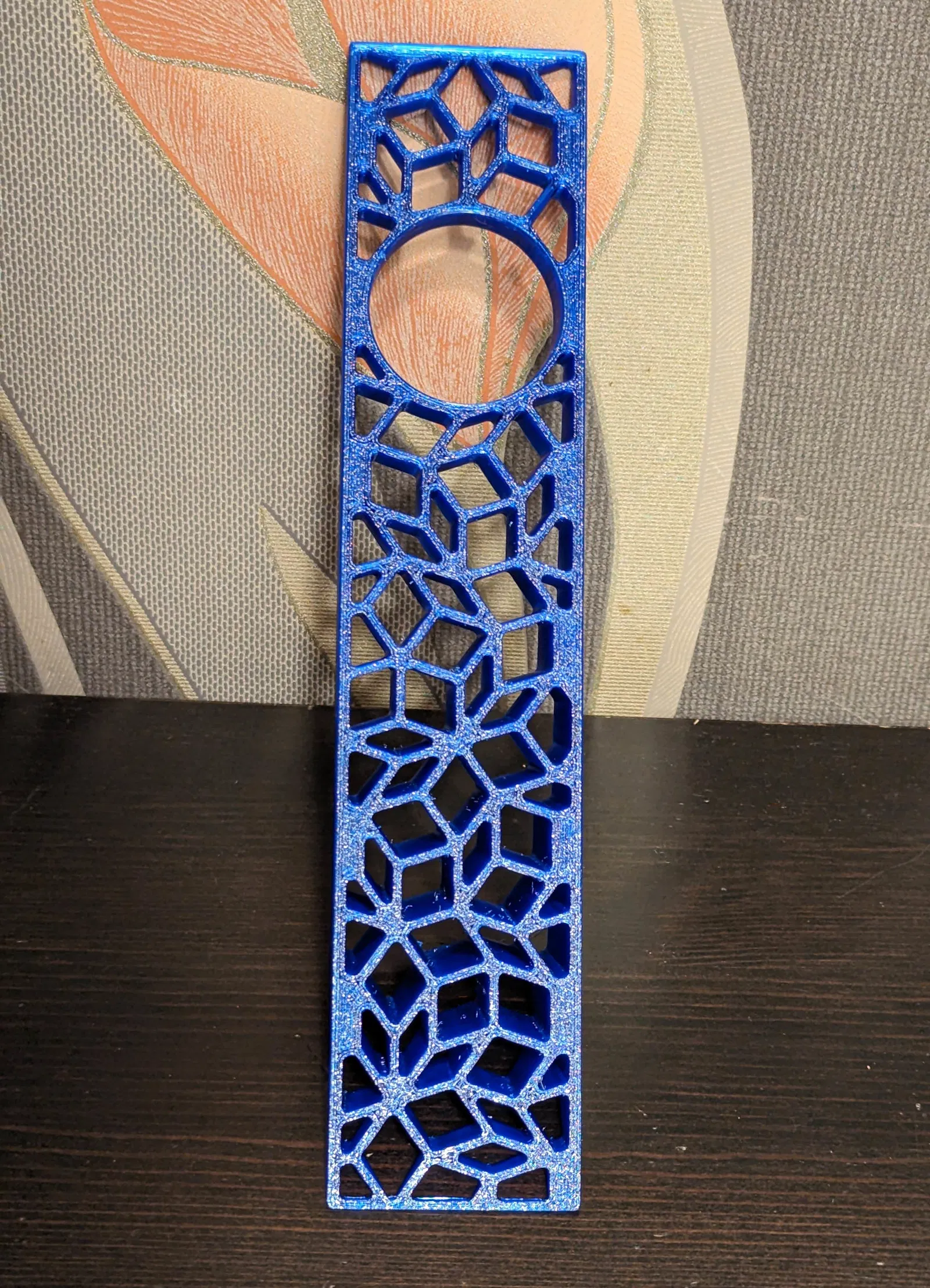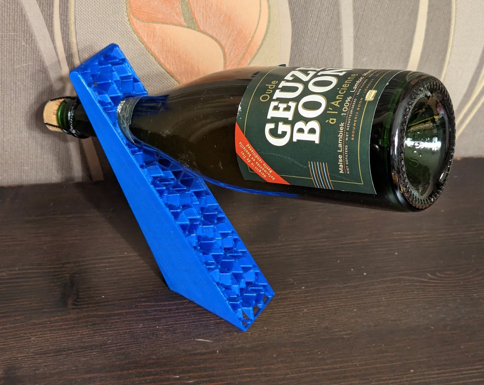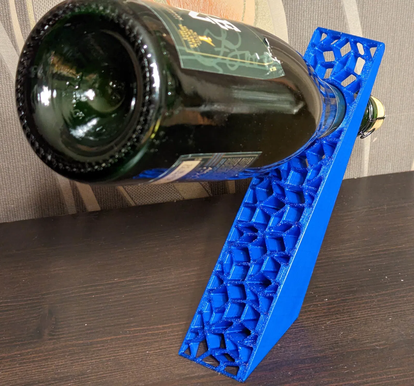 Giá đỡ chai sâm panh độc đáo với họa tiết khảm Penrose. Có hai phiên bản: một cho chai vang thường (lỗ 35mm) và một cho chai sâm panh (lỗ 38mm), mang đến sự sáng tạo và tiện dụng cho bộ sưu tập của bạn.