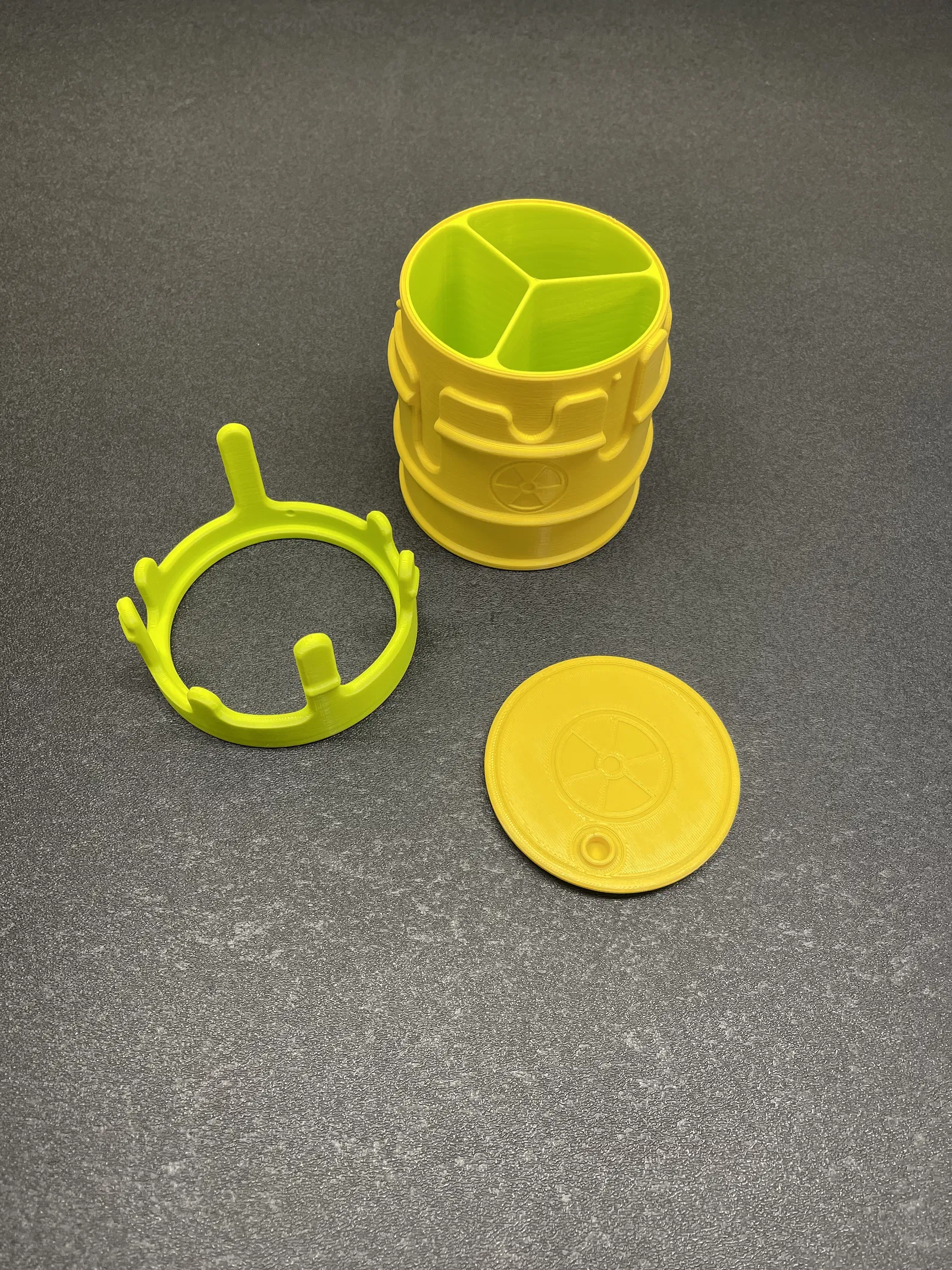 Nếu bạn đã có Drippy Bucket hoặc Drippy Pail và ước chúng bớt kiểu vẽ vời như thùng sơn mà giống thùng rác thải nguy hại hơn thì đây chính là cái bạn cần! Drippy Drum có kích thước tương đương các thành viên khác trong gia đình và sử dụng cùng kiểu khớp trượt cùng phương pháp giữ bằng lẫy. Các bộ phận nắp và bộ chia bên trong là tùy chọn khi sử dụng nhưng lại rất cần thiết để tăng tính thẩm mỹ. Drippy Drum là người bạn đồng hành hoàn hảo cho Drippy Bucket và Drippy Pail, sẵn sàng giúp bạn sắp xếp bàn làm việc, trồng một chậu cây nhỏ, trưng bày đẹp mắt trên kệ và nhiều hơn nữa. Vui lòng không lưu trữ chất thải nguy hại trong Drippy Drum.