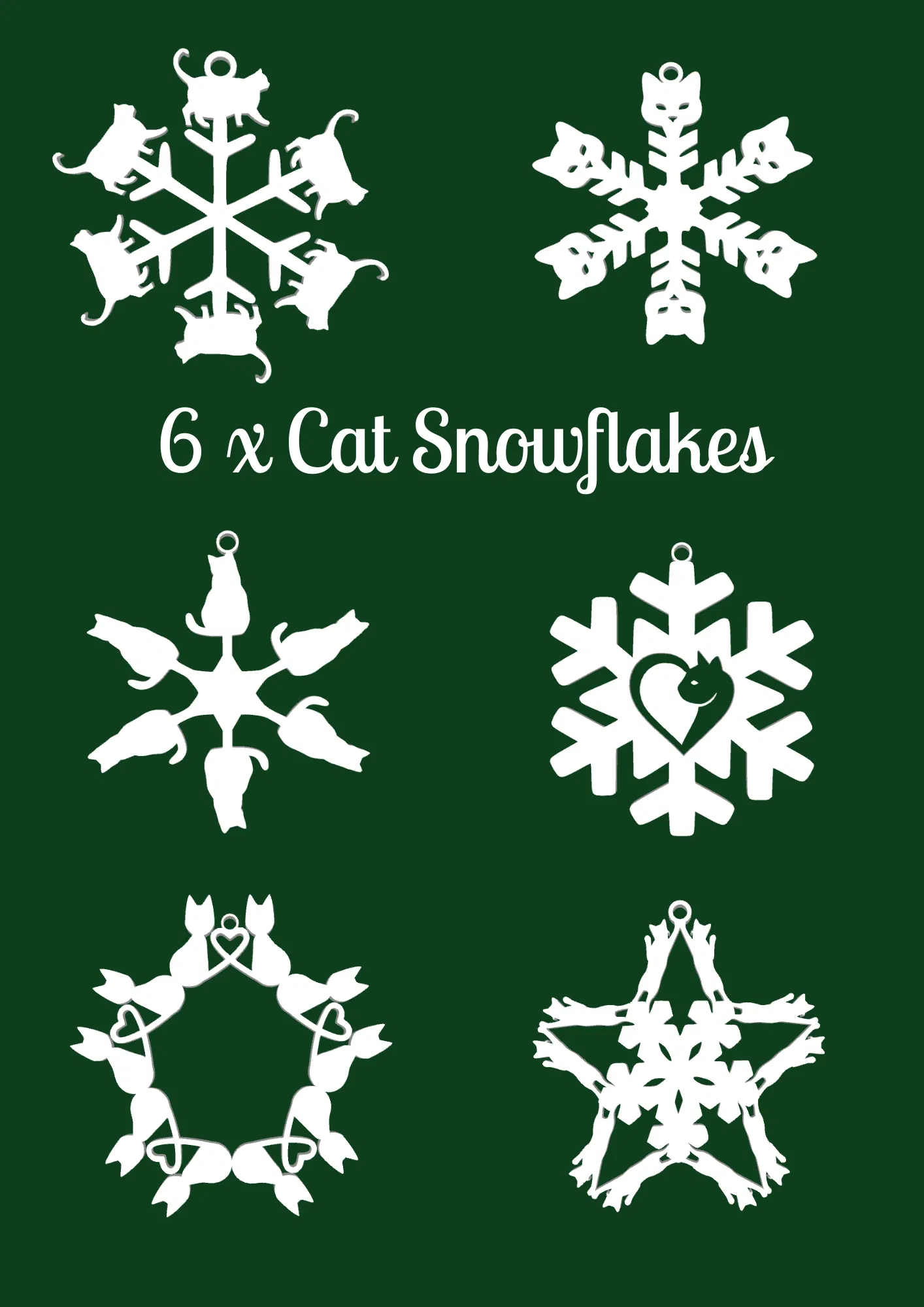 In nhanh, dễ dàng 6 bông tuyết hình mèo trang trí cây thông Noel. Kích thước mỗi món khoảng 5cm x 5cm, có thể tùy chỉnh. Món quà lý tưởng cho người yêu mèo.