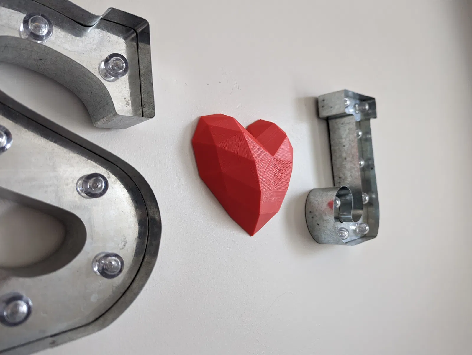 Tao cần một cái gì đó để hoàn thiện đồ trang trí trên tường của tao. Có lẽ là một trái tim low poly. Tao tìm được một mẫu tuyệt vời từ một người sáng tạo khác, nhưng nó là một mẫu 3D hoàn chỉnh. Tao đang tìm cái gì đó có đáy phẳng để tao có thể treo nó lên. Vì vậy, tao đã chỉnh sửa lại mẫu với đáy phẳng và làm cho kích thước của nó lớn hơn nhiều.