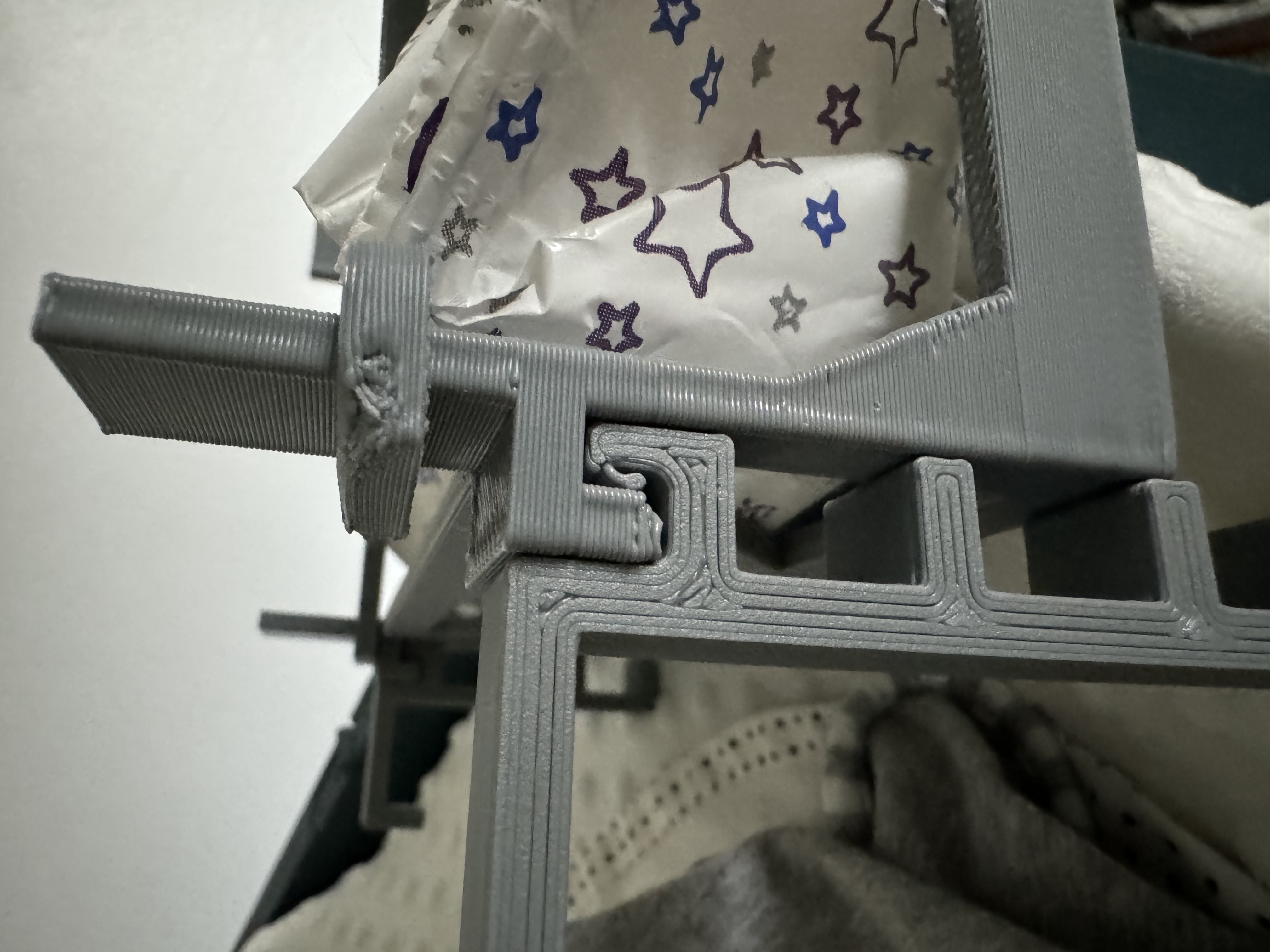 Mấy cái hộp và móc gắn với nhau bằng một cái móc vuông 5mm x 5mm, có một cái lò xo nhỏ ép vừa ở phía trên móc để giữ móc dính vào hộp khi mình di chuyển hộp.